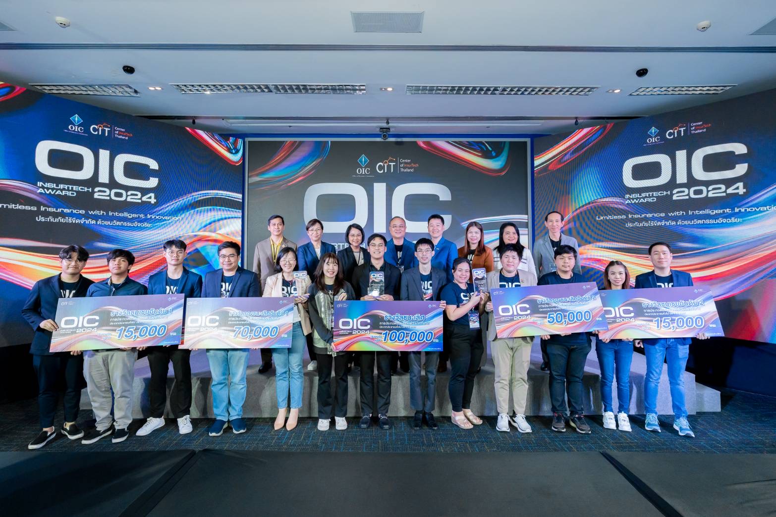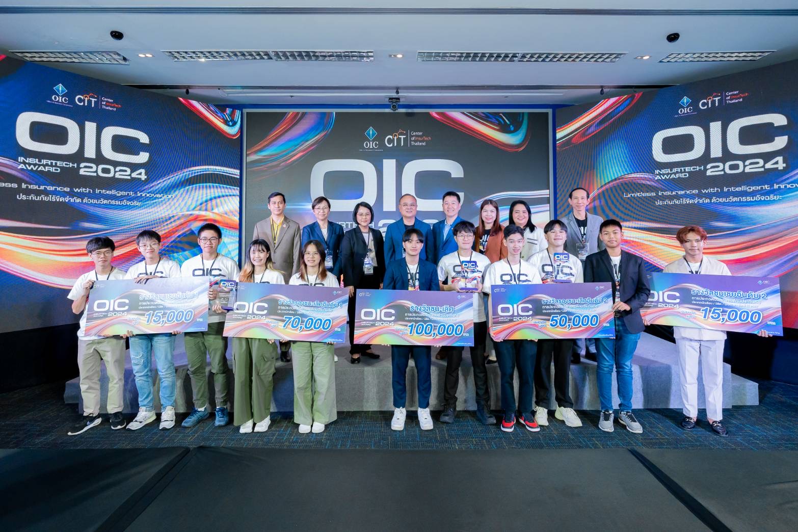 สำหรับผลการตัดสินการประกวดนวัตกรรมเทคโนโลยีด้านการประกันภัย “OIC InsurTech Award 2024” ประเภทนักเรียน นิสิต/นักศึกษา รางวัลชนะเลิศ ได้แก่ ทีม Scamtify เสนอ “AI แพลตฟอร์มป้องกันการหลอกลวงออนไลน์ ตรวจจับและแจ้งเตือนภัย เพิ่มความปลอดภัยให้ผู้ใช้อย่างมีประสิทธิภาพ” ได้รับเงินรางวัลมูลค่า 100,000 บาท พร้อมโล่รางวัล รางวัลรองชนะเลิศอันดับ 1 ได้แก่ ทีม TeleHalfBies เสนอแนวคิด “Carbon Neutral Insurance บริหารการปล่อยคาร์บอนด้วยเทคโนโลยี AI และ IOT ช่วยให้ธุรกิจบรรลุเป้าหมายด้านความเป็นกลางทางคาร์บอน และได้รับสิทธิประโยชน์ของเบี้ยประกันภัยที่ลดลง” รับเงินรางวัลมูลค่า 70,000 บาท พร้อมโล่รางวัล รางวัลรองชนะเลิศอันดับ 2 ได้แก่ ทีม HealthGuard เสนอ “แพลตฟอร์มฟื้นฟูผู้ป่วยหลังผ่าตัดด้วย Machine Learning และ Computer Vision เพื่อติดตามแผล และเพิ่มประสิทธิภาพการฟื้นฟู พร้อมลดภาระค่าใช้จ่ายประกันภัย” ได้รับเงินรางวัลมูลค่า 50,000 บาท พร้อมโล่รางวัล รางวัลชมเชยลำดับที่ 1 ได้แก่ ทีม ลิงกังแลเล เสนอแนวคิด “ประกันภัยที่ผสานเทคโนโลยีเพื่อลดความเสี่ยง เพิ่มการคุ้มครองความปลอดภัยให้แก่ชาวประมง” ได้รับเงินรางวัล 15,000 บาท และรางวัลชมเชยลำดับที่ 2 ได้แก่ ทีม Log(x) เสนอแนวคิด “ประกันขนส่งยาบนระบบ Cold Chain ใช้ AI และ IoT มาควบคุมคุณภาพ ลดความเสี่ยง รักษาความปลอดภัยและประสิทธิภาพยา” ได้รับเงินรางวัล 15,000 บาท