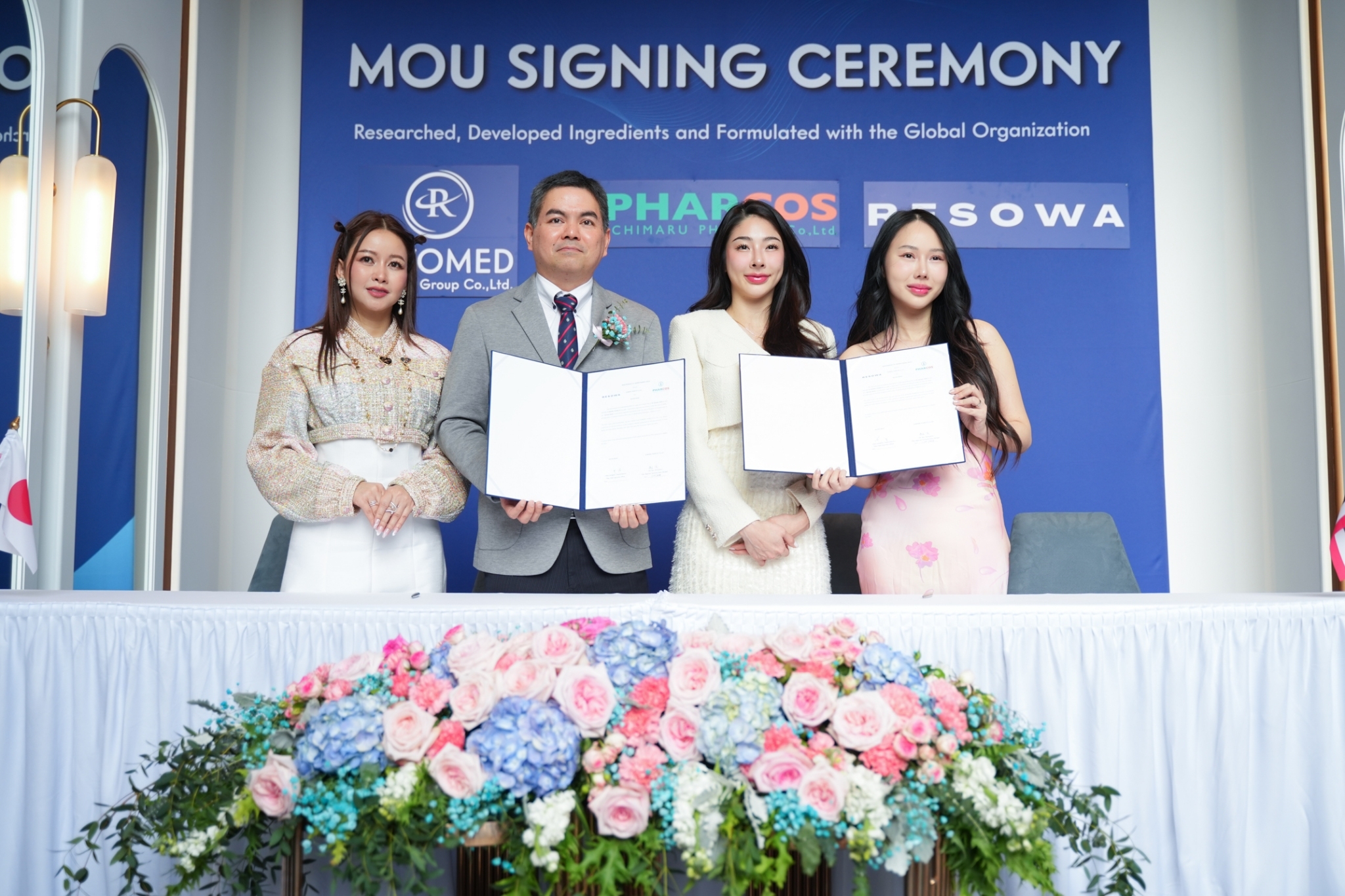 ผู้จัดการฝ่ายขายด้านเทคนิคประจำภูมิภาค) ประเทศญี่ปุ่น โดยมี “คุณวาสนา อินทะแสง” หรือคุณเมย์ CEO, REVOMED (Thailand) โรงงานให้บริการแบบครบวงจร สำหรับผู้ที่อยากผลิตครีม เครื่องสำอาง สินค้าเพื่อสุขภาพและความงาม ประเทศไทย ร่วมเป็นสักขีพยานในครั้งนี้