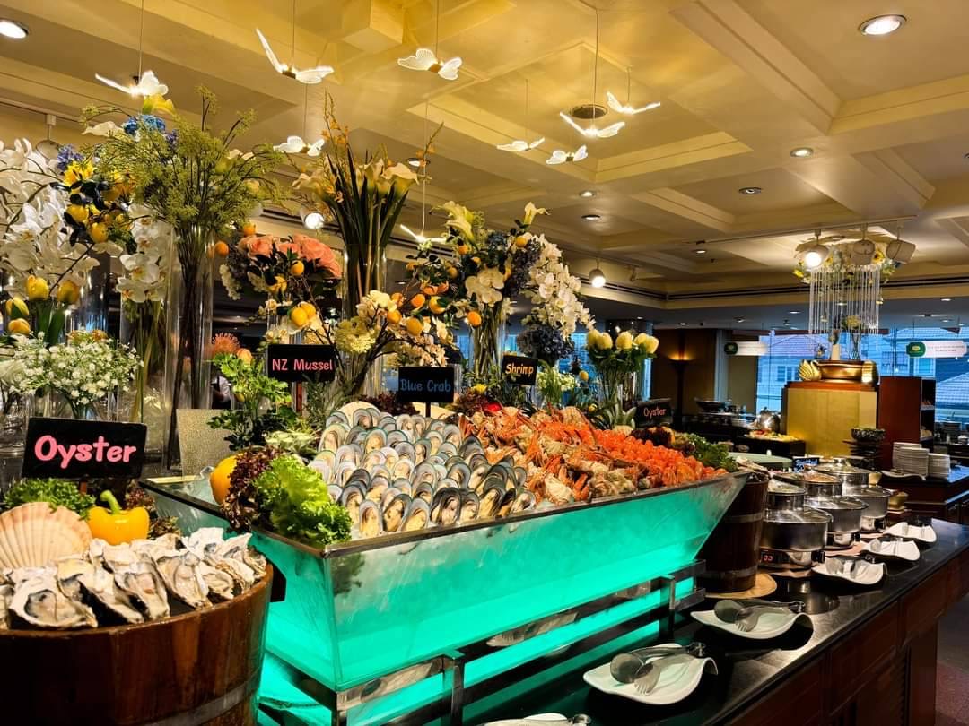 ดิเอมเมอรัลด์ ค็อฟฟี่ช็อพ จัดเต็มกับเมนูขึ้นชื่อมากมาย นำขบวนด้วยซีฟู้ด อาทิ หอยนางรม กั้งกระดาน หอยหวาน กุ้งแม่น้ำ ฯลฯ ขาหมูในตำนาน ซูชิพรีเมียม ทั้งฟัวกราส์ วากิว ปลาไหลญี่ปุ่น แซลมอน อร่อยกับเมนู ซุปเห็ดทรัฟเฟิล และ ข้าวซอสมันปูญี่ปุ่นออนท็อปด้วยหอยเป๋าฮื้อ รวมเครื่องดื่มน้ำอัดลม บริการทั้งมื้อกลางวันและเย็น บุฟเฟต์ท่านละ 1,299 บาทถ้วน