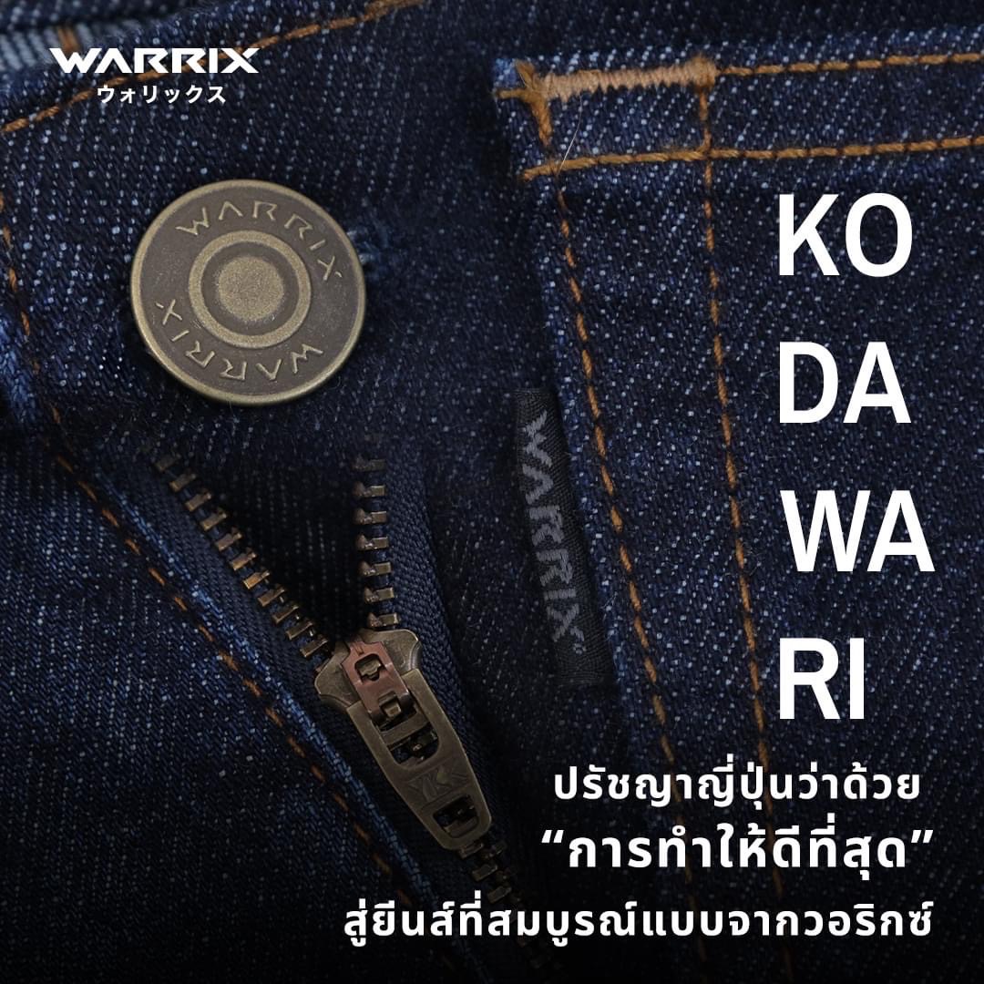 “วอริกซ์ได้นำปรัชญาญี่ปุ่น ‘โคดาวาริ’ ว่าด้วยเรื่องวิถีการพัฒนาตนเองมาต่อยอดการดีไซน์ พัฒนาสินค้าอย่างพิถีพิถัน มุ่งมั่นตั้งใจถ่ายทอดเรื่องราวที่เต็มไปด้วย Passion ผสานกับความตั้งใจแน่วแน่ เติมเต็มด้วยปรัชญา “ศาสตร์แห่งการทำให้ดีที่สุด” สู่ยีนส์ที่สมบูรณ์แบบจากวอริกซ์ WARRIX JEANS ที่ใส่ใจในทุกขั้นตอนของการผลิต ประณีตในทุกการตัดเย็บ ยกระดับดีเทลความพรีเมี่ยมไปอีกขั้น สัมผัสสู่มิติใหม่แห่งวงการยีนส์” นายวิศัลย์กล่าว