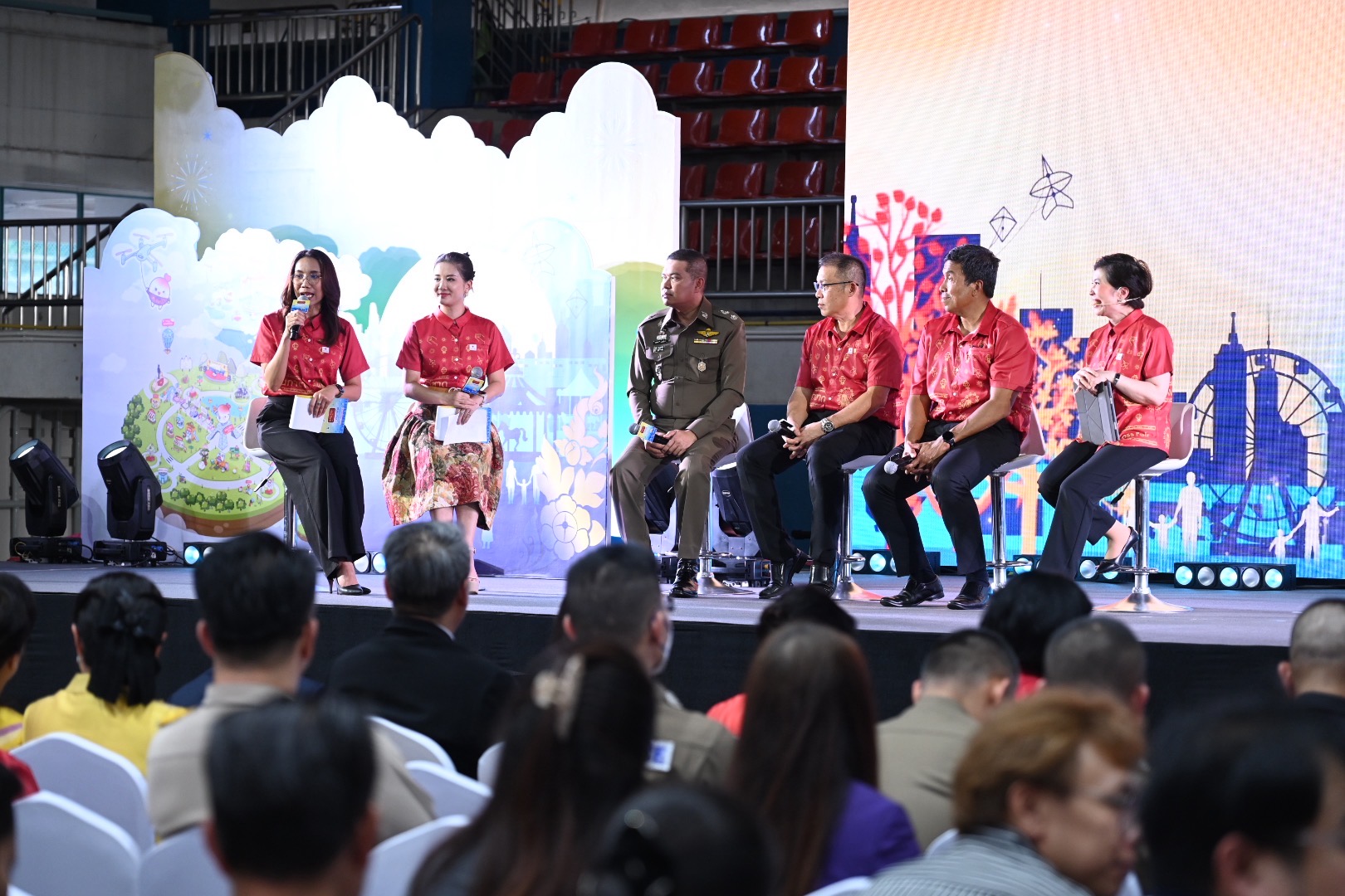 พร้อมกันนี้ภายในงานแถลงข่าวได้จัดให้มีการเสวนาในหัวข้อ “งานกาชาด เพื่อ ประชาชน” นำโดย                                   นางจันทร์ประภา วิชิตชลชัย รองผู้อำนวยการสำนักงานจัดหารายได้ สภากาชาดไทย กรรมการและเลขานุการ                     คณะกรรมการอำนวยการจัดงานกาชาดประจำปี 2567 นายชัชชาติ สิทธิพันธุ์ ผู้ว่าราชการกรุงเทพมหานคร พร้อมด้วยผู้แทนจากการไฟฟ้านครหลวง และกองบัญชาการตำรวจนครบาล โดยการเสวนาดังกล่าวระบุถึงความสำคัญของการจัดงานกาชาด และรายได้จากการจัดงานกาชาดที่ถูกนำไปกระจายเป็นความช่วยเหลือในรูปแบบต่าง ๆ เพื่อบรรเทาความเดือดร้อนของประชาชน พร้อมพูดคุยถึงความร่วมมือและแนวทางบริหารจัดการต่าง ๆ ภายในงานกาชาดประจำปี 2567ประกอบด้วย การเตรียมความพร้อมด้านต่าง ๆ อาทิ การจัดรถ BMA Feeder รับส่งที่สวนลุมพินี เพื่อลดปัญหาจราจรติดขัด การจัดเตรียมแสงสว่างให้เพียงพอ รวมถึงการคัดแยกขยะ และคำนึงถึงผลกระทบต่อสิ่งแวดล้อมเป็นสำคัญ อีกทั้งยังเน้นย้ำเรื่องมาตรการรักษาความปลอดภัยที่เคร่งครัด เพื่อสร้างความมั่นใจและสะดวกสบายแก่ประชาชนที่เดินทางมาร่วมงาน ครอบคลุมไปยังประชาชนที่อาศัยอยู่ในพื้นที่ใกล้เคียง ตลอดจนแนวทางการบริหารจัดการพื้นที่สวนลุมพิน ทั้งในระหว่างงานและหลังจบงาน เพื่อคืนพื้นที่อย่างสมบูรณ์แก่ผู้ใช้สวนลุมพินี
