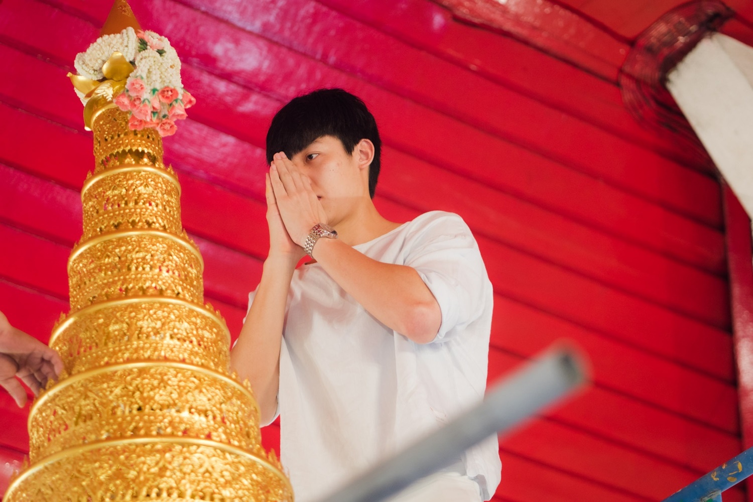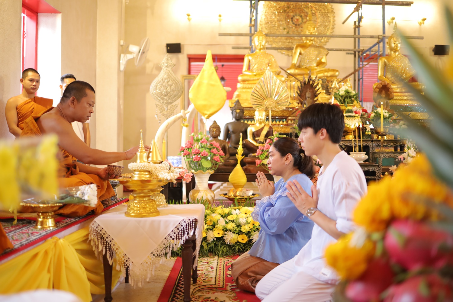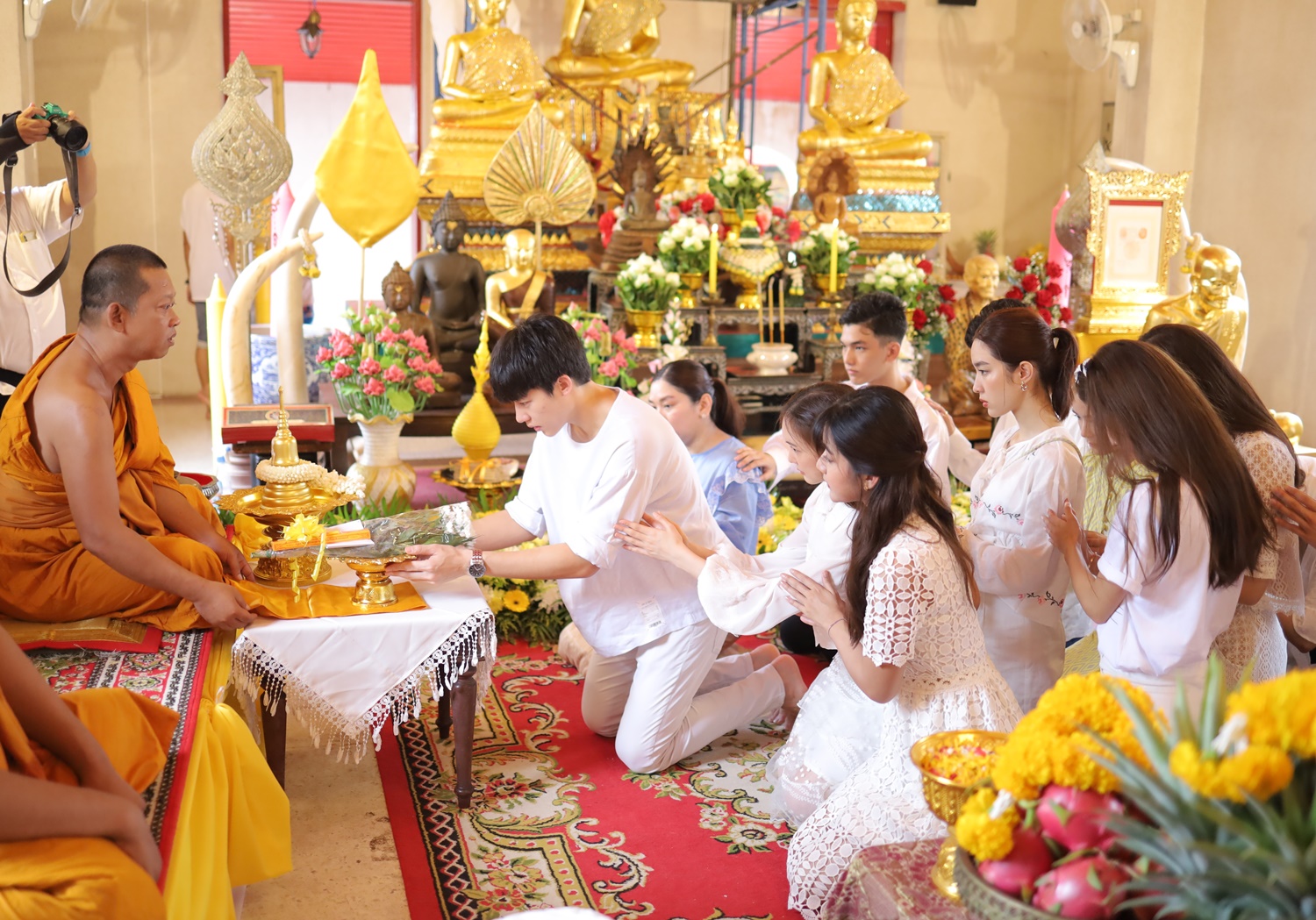 โดยทั้งหมดได้ร่วมกันถวายเทียนพรรษา, ถวายหลอดไฟ และโคมไฟแชนเดอเรียประดับพระอุโบสถ, ถวายสัปทน แด่พระสิวลี, ถวายฉัตรทองสูง 9 ชั้น แด่พระประธาน รวมถึงไถ่ชีวิตโค อีกทั้งยังถวายอุปกรณ์ทำความสะอาด และมีโอกาสได้ช่วยกันล้างห้องน้ำวัด เพื่อความเป็นสิริมงคลอีกด้วย