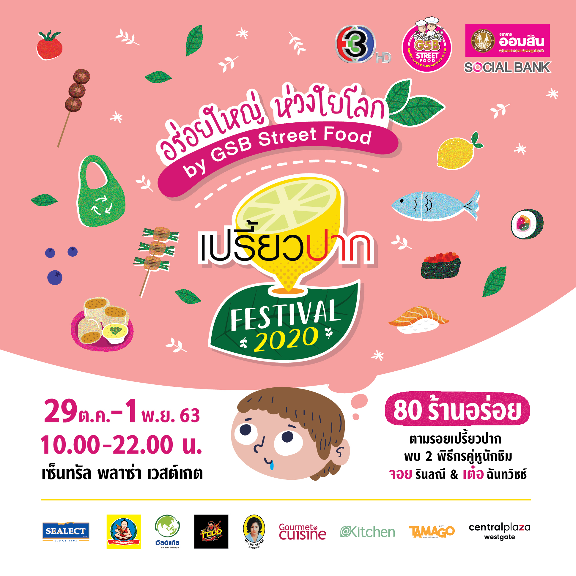 เริ่มเเล้ว! “เปรี้ยวปาก Festival 2020 อร่อยใหญ่ ห่วงใยโลก” ‘เต๋อ – จอย’ นำทัพกว่า 80 ร้านอร่อยเด็ดทั่วไทย 29 ตุลาคม  – 1 พฤศจิกายนนี้ 10.00 – 22.00 น. ณ ลานโปรโมชั่น ศูนย์การค้าเซ็นทรัลพลาซา เวสต์เกต