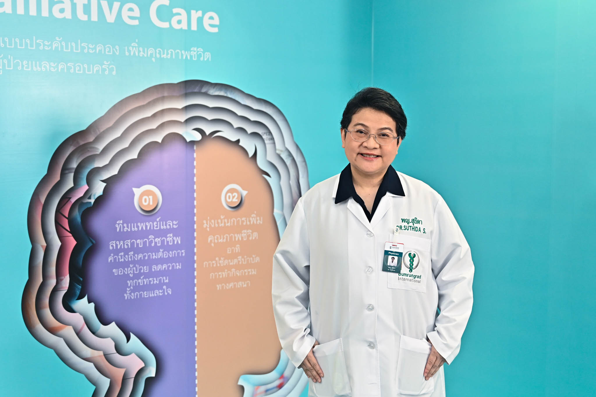พญ. สุธิดา สุวรรณเวโช แพทย์ชำนาญการด้านมะเร็งวิทยา และ Palliative Care โรงพยาบาลบำรุงราษฎร์ กล่าวว่า การดูแลแบบประคับประคอง สำหรับผู้ป่วยมะเร็งระยะสุดท้าย (Palliative Cancer Care) เป็นการดูแลที่มุ่งเน้นการเพิ่มคุณภาพชีวิตของผู้ป่วยและครอบครัว ช่วยลดความทุกข์ทรมานทั้งด้านร่างกาย จิตใจ สังคม และจิตวิญญาณ โดยจะคำนึงถึงความต้องการและความปรารถนาของผู้ป่วยและครอบครัวร่วมด้วยเสมอ โดยศูนย์มะเร็งฮอไรซันมีทีม Palliative Tumor Board ประกอบด้วยทีมแพทย์และพยาบาลผู้เชี่ยวชาญด้านการดูแลแบบประคับประคองที่จะคอยติดตามประเมินอาการและให้การดูแลในทุกมิติอย่างใกล้ชิด นอกจากนี้ เรายังได้ร่วมมือกับบัณฑิตวิทยาลัย จุฬาลงกรณ์มหาวิทยาลัย นำดนตรีบำบัดเข้ามาดูแลผู้ป่วยเพื่อช่วยให้ผู้ป่วยรู้สึกผ่อนคลายได้ดียิ่งขึ้น