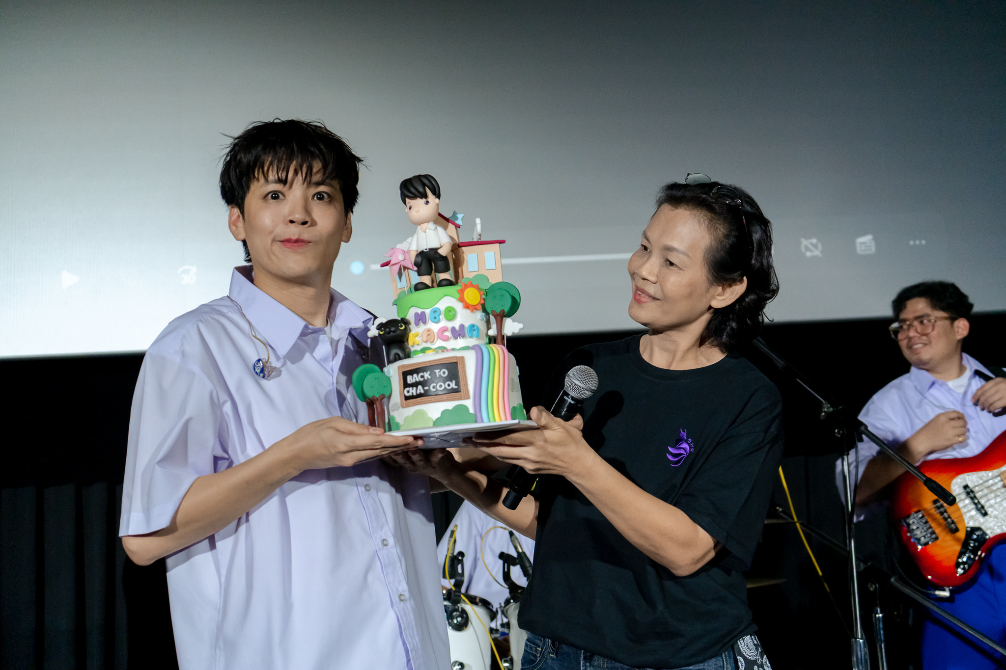 แต่ความพิเศษของมินิแฟนคอน “Back to cha-cool” ยังไม่จบเพียงเท่านั้น เพราะเหล่าแฟนคลับพร้อมคุณแม่และน้องชายได้ยกเค้กมาเซอร์ไพร์สวันเกิดอายุครบ 33 ปีของคชา เรียกว่าเป็นช่วงเวลาที่อบอุ่นอย่างมาก แถมเหล่าแฟนคลับคนรักคชาต่างส่งเสียงร้องแฮปปี้เบิร์ธเดย์ดังกึกก้องสนั่นโรงหนังกันเลยที่เดียว ความพิเศษยังไม่หมด เพราะยังมีคลิปวิดีโออวยพรวันเกิดของเพื่อนๆ น้องๆ ที่เคยร่วมงานกับคชาอีกด้วย บอกได้คำเดียวว่าซึ้งมากๆ