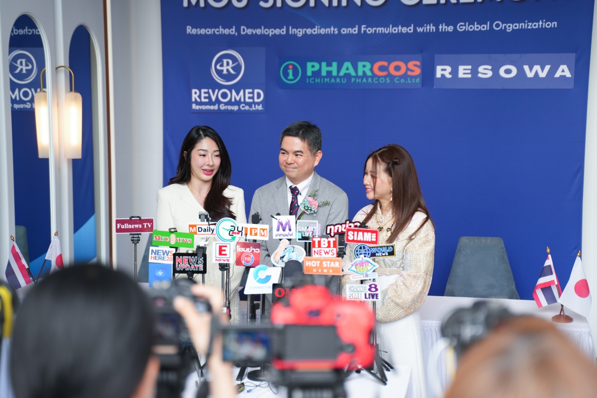 ผู้จัดการฝ่ายขายด้านเทคนิคประจำภูมิภาค) ประเทศญี่ปุ่น โดยมี “คุณวาสนา อินทะแสง” หรือคุณเมย์ CEO, REVOMED (Thailand) โรงงานให้บริการแบบครบวงจร สำหรับผู้ที่อยากผลิตครีม เครื่องสำอาง สินค้าเพื่อสุขภาพและความงาม ประเทศไทย ร่วมเป็นสักขีพยานในครั้งนี้