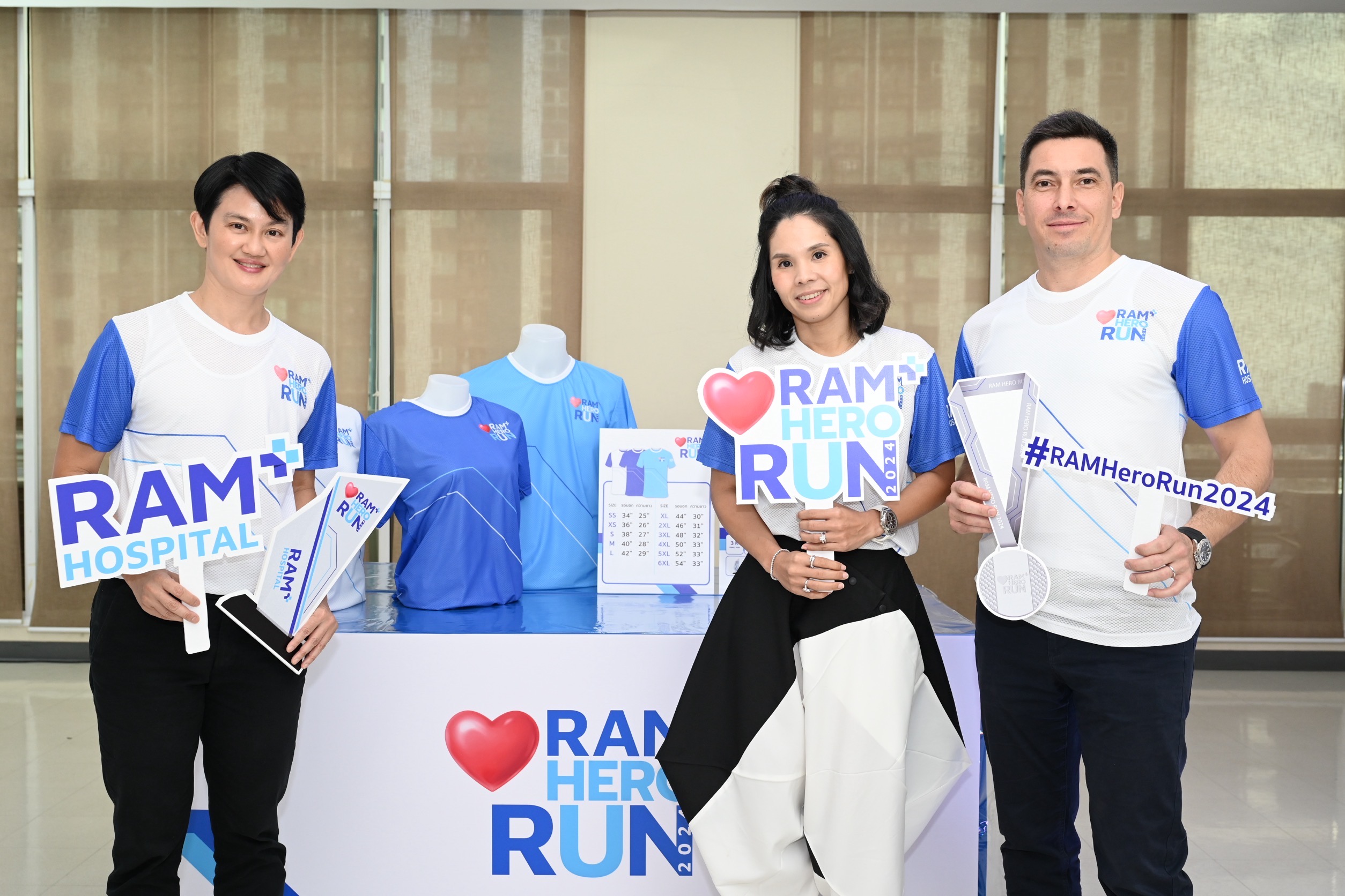ด้าน นางสาวทัศน์วรรณ ศิริวงศ์ กรรมการบริหาร โรงพยาบาลรามคำแหง กล่าวเสริมว่า “การแข่งขันวิ่ง “Ram Hero Run 2024” วิ่งปลอดภัย เพื่อทุกหัวใจแข็งแรง แบ่งการแข่งขันออกเป็น 4 ประเภท ได้แก่ แฟมิลี่ รัน ระยะทาง 3 กิโลเมตร, ฟันรัน ระยะทาง 5 กิโลเมตร, มินิ มาราธอน ระยะทาง 10 กิโลเมตร และฮาล์ฟ มาราธอน ระยะทาง 21 กิโลเมตร ซึ่งเส้นทางการวิ่งได้รับการวัดระยะและรับรองจากสมาคมกีฬากรีฑาแห่งประเทศไทย นอกจากนี้ยังใช้ระบบ Chip Time มาตรฐานระดับสากลในการตัดสิน เพื่อความเป็นธรรมแก่นักวิ่งทุกคน และสำหรับผู้เข้าร่วมงานจะได้รับเสื้อที่ระลึก, เหรียญรางวัล, BIB หมายเลขการแข่งขัน และบัตรสมาชิกโรงพยาบาลรามคำแหง ทั้งนี้ โรงพยาบาลรามคำแหง พร้อมดูแลความปลอดภัยให้แก่ผู้ร่วมงานตลอดเส้นทาง โดยมีหน่วยแพทย์เคลื่อนที่และจุดบริการรถพยาบาลฉุกเฉิน (Ambulance) พร้อมทีมปฐมพยาบาล อีกทั้งยังมีทีมนักวิ่งฮีโร่ที่ผ่านการอบรม BASIC LIFE SUPPORT (CPR) และการใช้เครื่อง AED ซึ่งเป็นผู้ที่มีทักษะสามารถช่วยเหลือชีวิตเบื้องต้น วิ่งกระจายตัวอยู่ในทุกระยะ เพื่อให้นักวิ่งอุ่นใจตลอดการวิ่ง นอกจากนี้โรงพยาบาลยังมีบูธ RAM HEALTH & FIT FAIR จัดกิจกรรมให้ความรู้และตรวจสุขภาพเบื้องต้นไว้คอยให้บริการแก่นักวิ่งพร้อมกิจกรรมเล่นเกมรับของที่ระลึกไว้ให้ร่วมสนุกกันอีกด้วย”