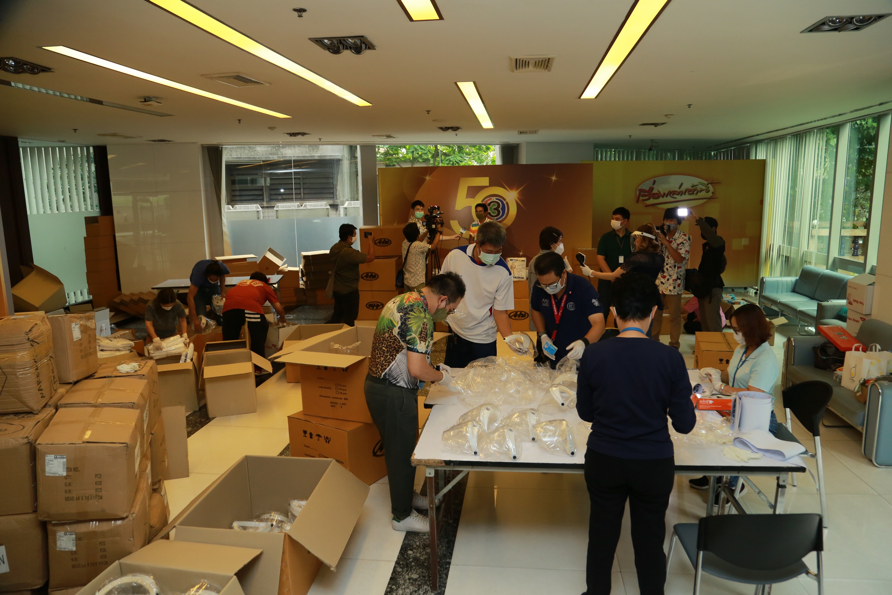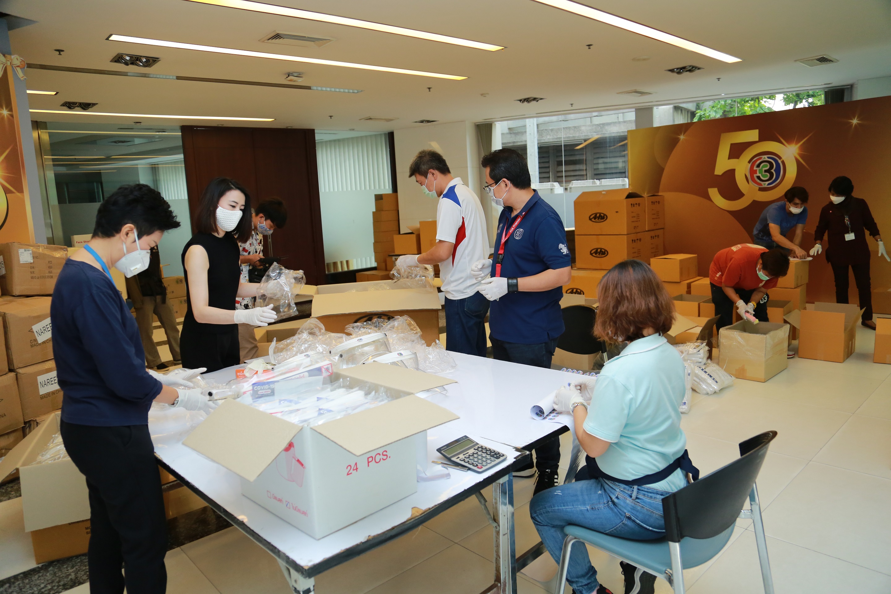 คุณปิ่นกมล มาลีนนท์ ผู้บริหาร สถานีโทรทัศน์ไทยทีวีสีช่อง 3 ร่วมด้วย คณะผู้จัด และนักแสดงช่อง 3 อาทิ วรายุฑ มิลินทจินดา, จริยา แอนโฟเน่, ชุดาภา จันทเขตต์, ปริศนา กล่ำพินิจ, หมอก้อง สรวิชญ์ สุบุญ ผนึกกำลังจัดเตรียมเครื่องมือและอุปกรณ์ทางการแพทย์ จากน้ำใจคนไทยที่สมทบทุนผ่าน มูลนิธิครอบครัวข่าว ในโครงการ “ช่อง 3 เคียงข้างคนไทยฝ่าภัยโควิด-19” เพื่อส่งมอบให้กับ หน่วยแพทย์ พยาบาล โรงพยาบาล ในการนำไปใช้ต่อสู้และรักษาผู้ป่วย ตามเจตนารมณ์ของคนไทยทุกท่าน ณ อาคารมาลีนนท์ ทาวเวอร์ 2 ถนนพระราม 4 ซึ่งครั้งนี้ถือเป็นครั้งที่ 2 ที่เตรียมส่งมอบให้กับ 108 โรงพยาบาล ใน 60 จังหวัดที่ขาดแคลนอุปกรณ์ทางการรักษาและจะนำส่งอย่างต่อเนื่องต่อไป