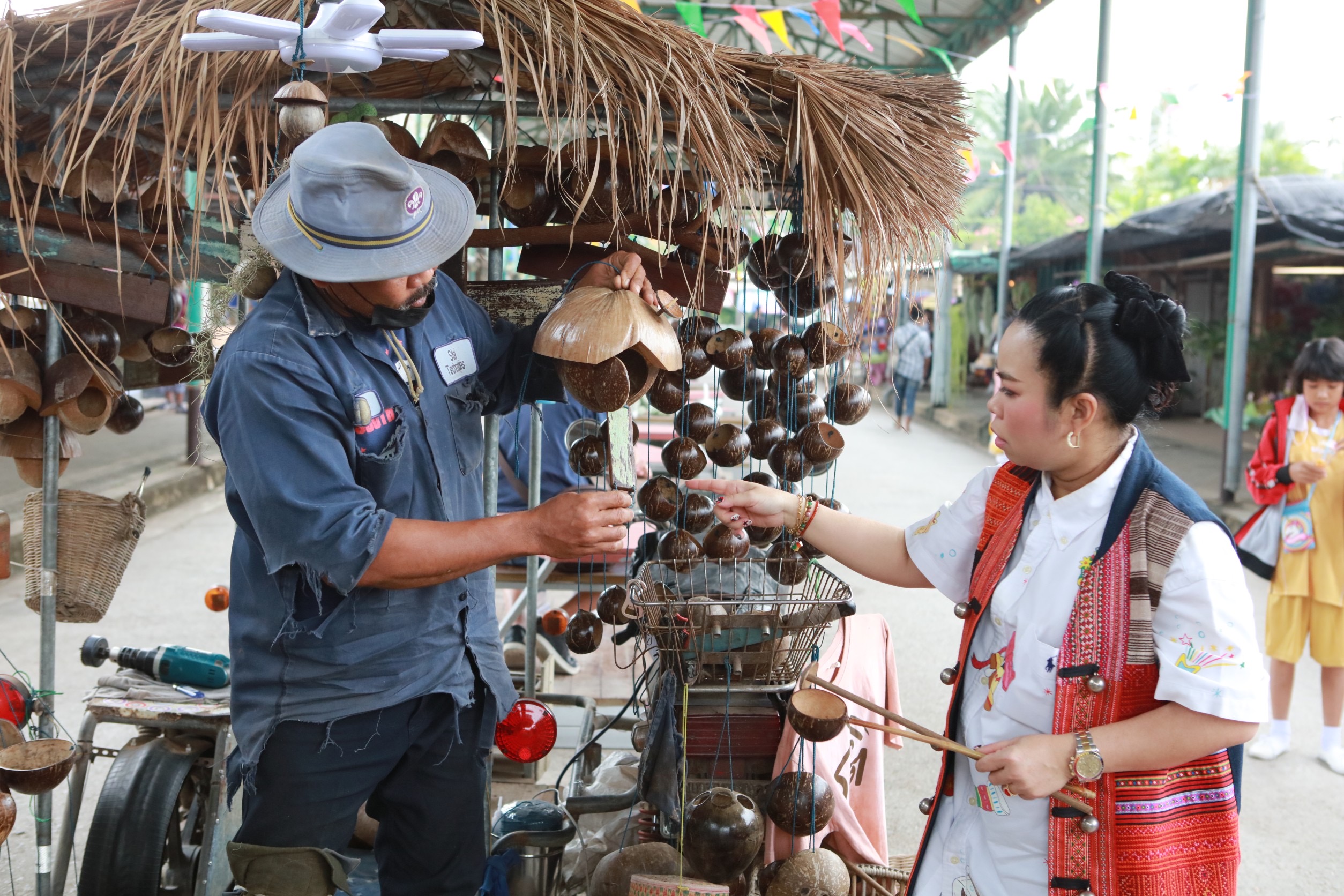 แน่นอนว่ามาถึงตลาดน้ำท่าคาแห่งนี้ ต้องจัดผลไม้สดๆ ด้วย ทั้งส้มโอ และมะพร้าวน้ำหอมที่เพิ่งจะเด็ดจากต้นมาใหม่ๆ งานนี้ตุ๊กกี้จัดส้มโอขาวใหญ่เนื้อน้ำผึ้งหวานฉ่ำ ออริจินัลของอัมพวาเท่านั้น ใครมาถึงแล้วไม่จัด ถือว่ามาไม่ถึงตลาดน้ำท่าคาเด้อ…