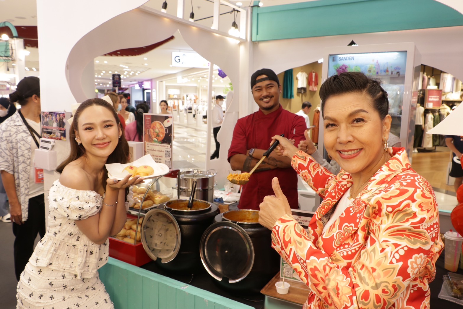 คราวนี้ “ก้อง ปิยะ”แตะมือให้เพื่อนซี้ “ท็อป ดารณีนุช” ลุยตลาด ชวนนางเอกสาวมาแรง “ญดา นริลญา กุลมงคลเพชร” จากละคร “ขวัญฤทัย” ดวงใจเทวพรหม มาร่วมเชิญชวนพี่ ป้า น้า อา ชวนลูกหลาน ญาติสนิท มิตรสหาย คนในบ้าน ออกมาเดินช้อปดับร้อน ละลานตากับเมนูอาหารอร่อย กว่า 1,000 เมนู จัดหนัก จัดเต็มโปรฉ่ำ โปรดีๆ กินฟรี มีแถม!! อิ่มอร่อยทะลุ ดับร้อนกันไปเลยจ้า ใครได้กินฟรี หรือมีของแถม ติดไม้ติดมือไปฝากคนที่บ้าน แบบจุกๆ เดินช้อป แวะชิม แบบชิลๆ แอร์เย็นสบาย กับเมนูหลากหลาย จากพ่อค้าแม่ค้า ที่ขนกันมา อาทิ หมูกระด้งเบคอนทอดน้ำปลา, รัชฎาลุยสวน, จ๊อปู ย.ยักษ์ยิ้ม,หมูสะเต๊ะมังกรทอง, อ๊อด-เจน เขียวหวานสะท้านฟ้า, ถั่วบางนราฯ, บ้านปลาทูมหาชัย, เฮียหงี เยาวราช, ขาหมูนครปฐม, ถั่วเทพ อร่อยขั้นเทพ, Kunnook Orange Juice, Chef’s Table To Deliver by chef GOR ฯ, มูลนิธิสงเคราะห์ครอบครัวทหารผ่านศึกฯ และแว๊บชิมของอร่อยที่บูธรุ่นพี่ดารานักแสดงอย่าง ข้าวเกรียบ อะไรซ์ Brandnew Field Good by เป๊ก & นิว , ครัวอุ่นไอรัก by เฮีย หมู บางรักซอย 9,ร้าน YING’s by เชฟบอล มาสเตอร์เชฟ & อร อุมา , น้ำพริกป้าแว่น by ษา วรรณษา