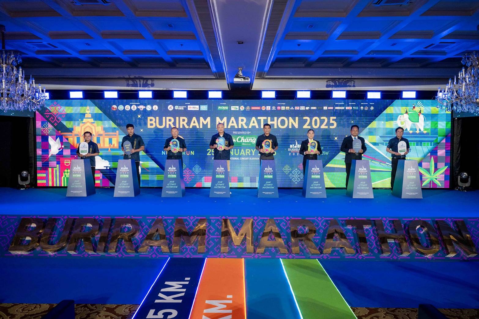 วันที่ 27 สิงหาคม 2567 สโมสรราชพฤกษ์ กรุงเทพฯ : งานแถลงข่าวการจัดการแข่งขัน “บุรีรัมย์ มาราธอน 2025 พรีเซนเต็ด บาย น้ำแร่ธรรมชาติตราช้าง” ภายใต้แนวคิด Your Ultimate Destination สวรรค์ของนักวิ่ง ที่จะจัดแข่งขันในวันที่ 25 มกราคม 2568 หนึ่งในงานวิ่งที่ได้รับความนิยมมากที่สุด มีนักวิ่งร่วมงานมากกว่า 3 หมื่นคน ได้รับการรับรองจากสหพันธ์สมาคมกรีฑานานาชาติ (World Athletics) มาตรฐาน Gold Label ระยะมาราธอนรายการแรกและรายการเดียวของประเทศไทย