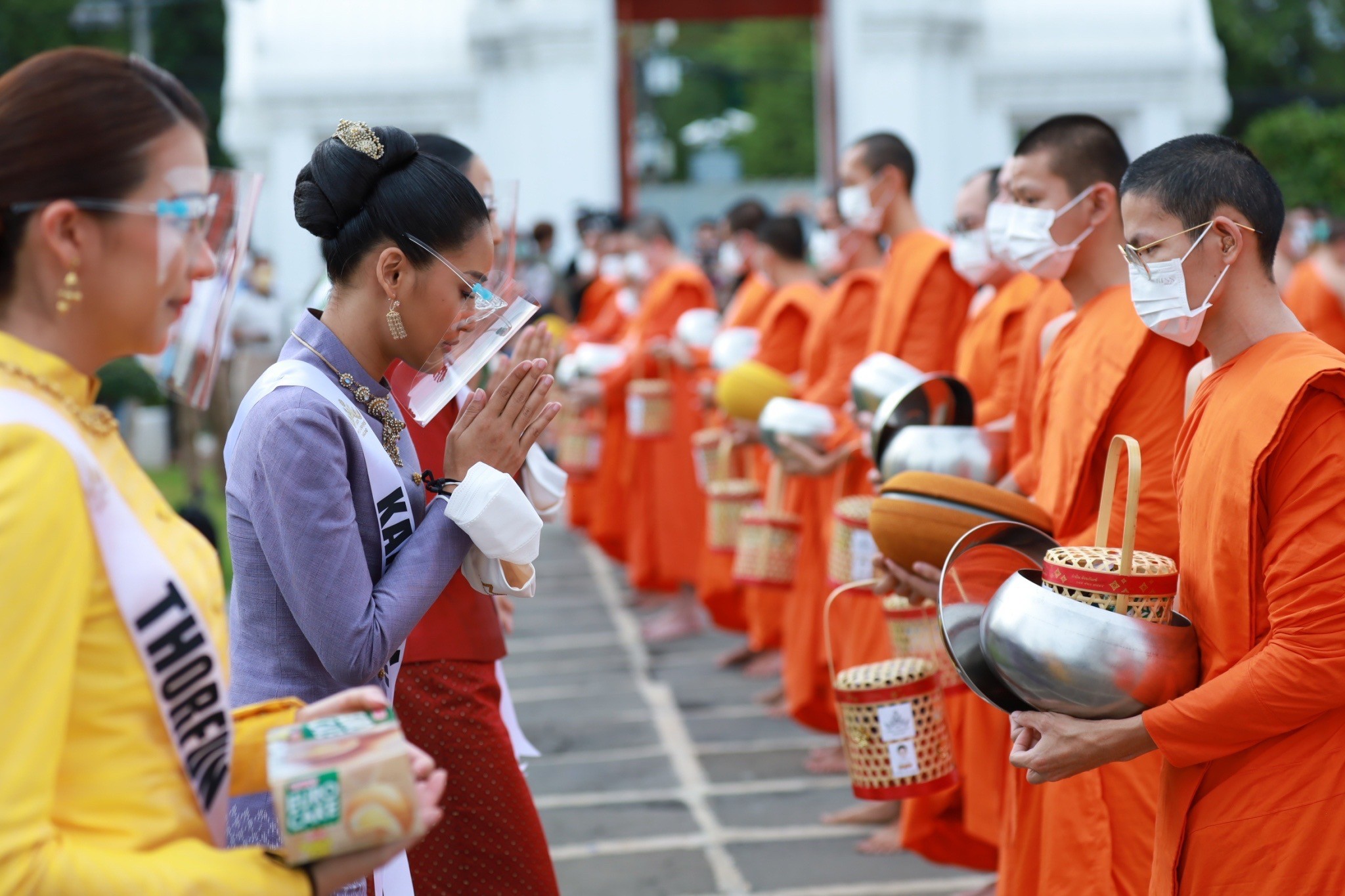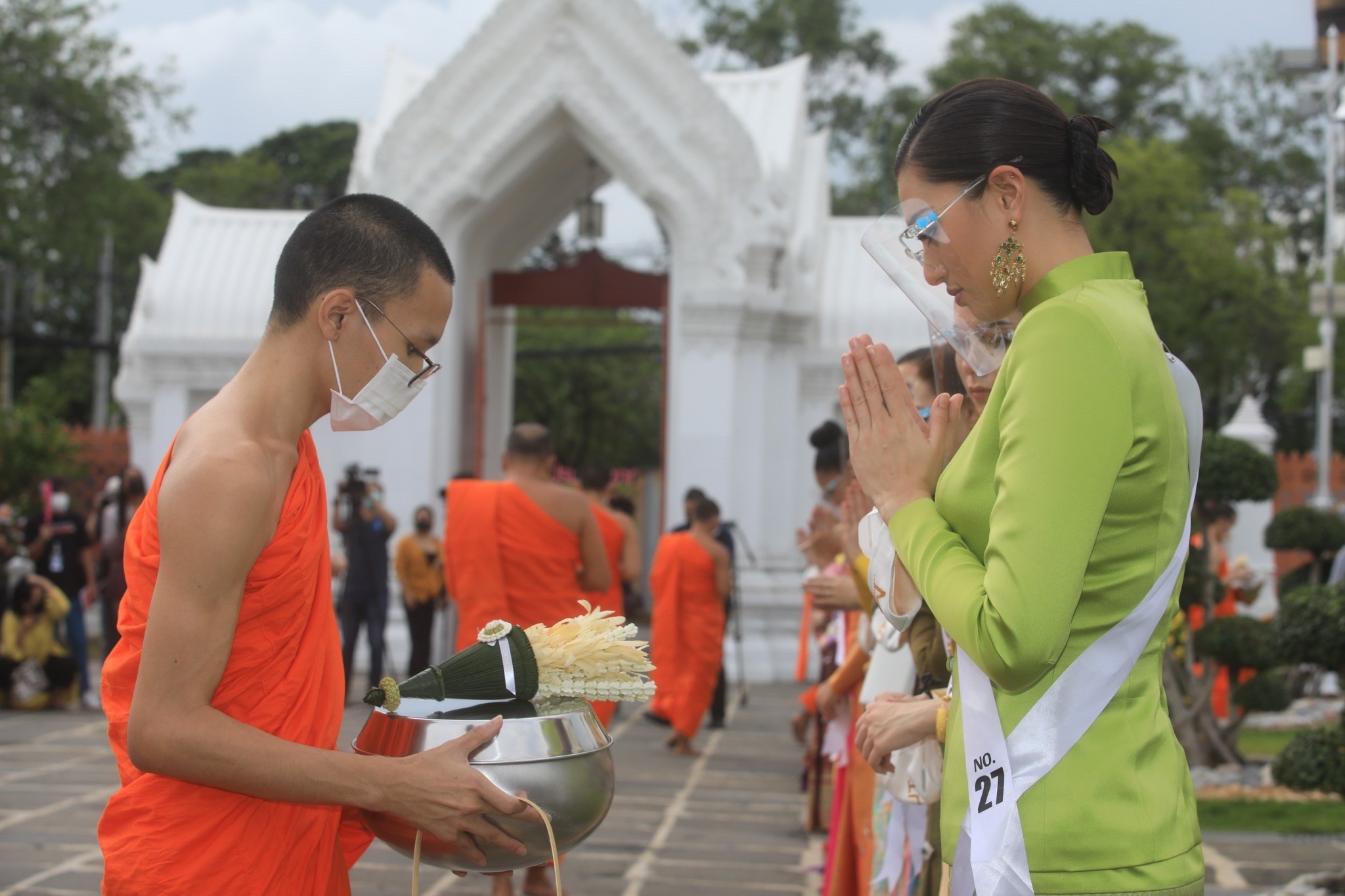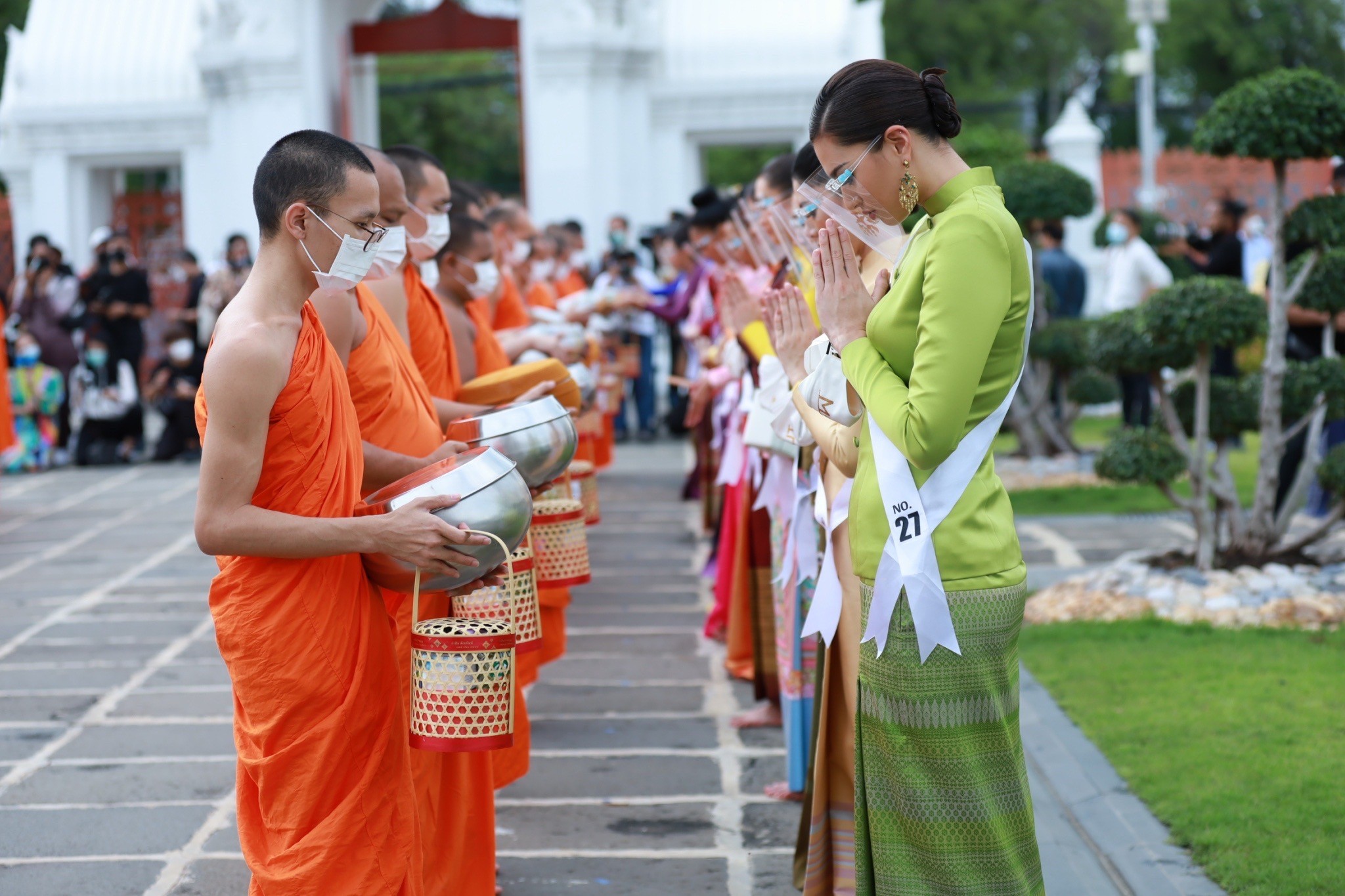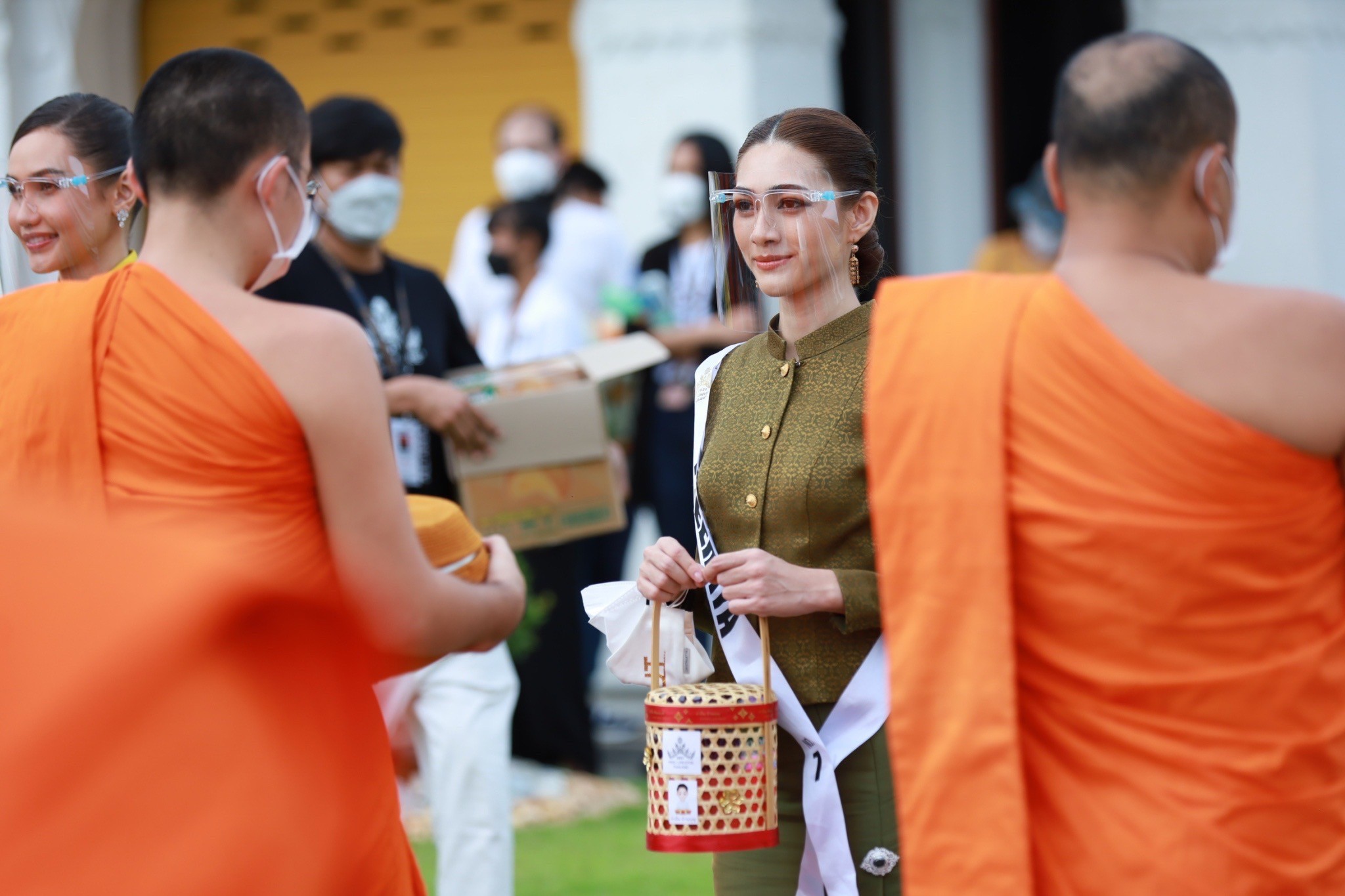 กองประกวด มิสยูนิเวิร์สไทยแลนด์ 2021 (Miss Universe Thailand 2021) สืบสานวัฒนธรรมและขนบธรรมเนียมประเพณีอันงดงามของไทย ชวนสาวงาม 30 คนสุดท้าย และทีมงานกองประกวด ร่วมกราบนมัสการพระภิกษุสงฆ์รับบิณฑบาตจำนวน 30 รูป ณ พระอุโบสถ วัดเบญจมบพิตรดุสิตวนารามราชวรวิหาร เพื่อเป็นสิริมงคลตลอดการประกวดในปีนี้