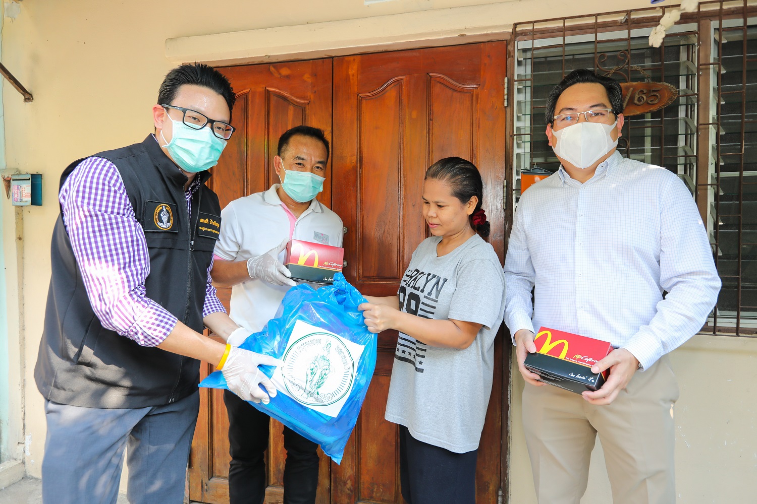 ลงพื้นที่แจกถุงยังชีพ พร้อมเบอร์เกอร์และพายจากแมคโดนัลด์ช่วยเหลือประชาชนในชุมชนย่านหลักสี่
