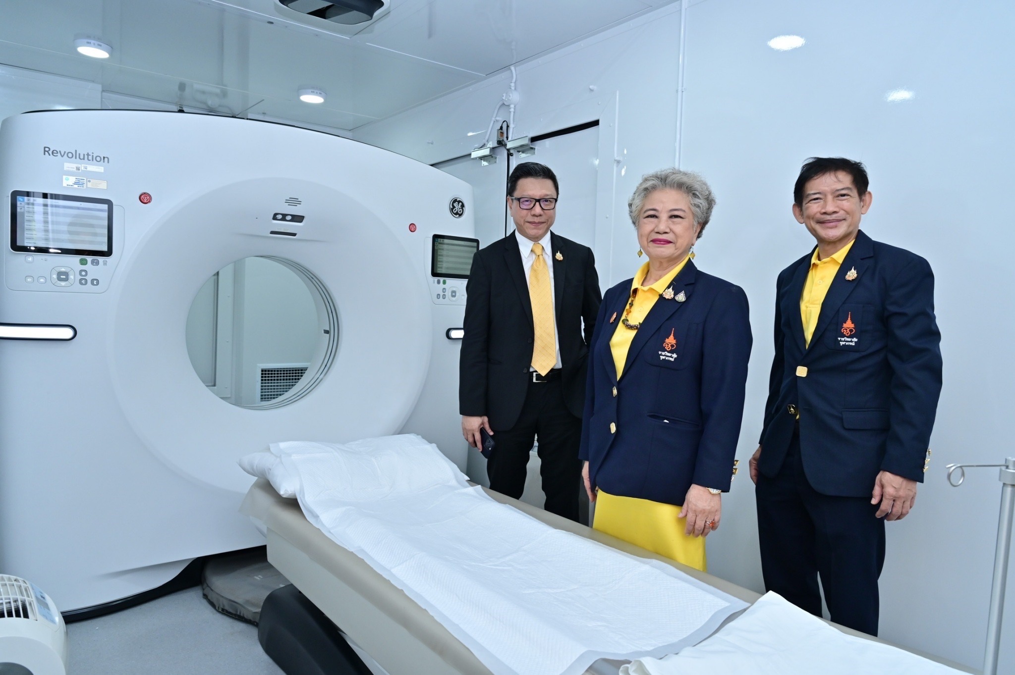 นวัตกรรมรถเอกซเรย์คอมพิวเตอร์พร้อมด้วยเทคโนโลยี AI โดย ศ.พญ.จิรพร เหล่าธรรมทัศน์คณบดีคณะเทคโนโลยีวิทยาศาสตร์สุขภาพ ราชวิทยาลัยจุฬาภรณ์ และ อ.ดร.วิทยา สังขะรัตน์ รองคณบดีด้านวิจัยนวัตกรรม เทคโนโลยีสารสนเทศและวิเทศสัมพันธ์ คณะเทคโนโลยีวิทยาศาสตร์สุขภาพ ราชวิทยาลัยจุฬาภรณ์ ซึ่งเป็นนวัตกรรมที่ออกแบบโดยคนไทยในช่วงสถานการณ์การระบาดของไวรัสโควิด–๑๙ จึงเหมาะใช้คัดกรองรอยโรคในปอดโดยนำมาใช้ดูแลสุขภาพปอดของคนไทยในพื้นที่กรุงเทพมหานครและปริมณฑลที่ได้รับผลกระทบด้านมลภาวะทางอากาศสูงของฝุ่นละอองจิ๋ว PM ๒.๕ เฉลิมพระเกียรติพระบาทสมเด็จพระเจ้าอยู่หัวเนื่องในโอกาสพระราชพิธีมหามงคลเฉลิมพระชนมพรรษา ๖ รอบ จำนวน ๗๒๐ ราย เพื่อให้ประชาชนได้เข้าถึงการตรวจคัดกรองสภาวะปอดด้วยเครื่องเอกซเรย์คอมพิวเตอร์ความเร็วสูงแบบใช้ปริมาณรังสีต่ำพร้อมด้วยระบบการจัดท่าและการสแกนอัตโนมัติ วินิจฉัยรอยโรคร่วมกับระบบเทคโนโลยีปัญญาประดิษฐ์ภายในรถที่มีความปลอดภัยสูงสุดจากการติดเชื้อหรือแพร่เชื้อโรคด้วยระบบกรองอากาศความเร็วสูงและแสงยูวี ๒๒๒ นาโนเมตร โดยนอกจากจะช่วยให้ประชาชนในโครงการได้รับการประเมินสภาพปอดจากภัยสุขภาพฝุ่นจิ๋วแล้ว ยังเป็นประโยชน์ต่อยอดสู่การขับเคลื่อนและพัฒนานโยบายทางด้านการจัดการมลพิษของประเทศชาติต่อไป โดยประชาชนกลุ่มเป้าหมายที่สามารถเข้าร่วมโครงการ ฯ จะต้องอยู่ในช่วงอายุ ๒๐ – ๖๐ ปี มีพื้นที่พักอาศัยและพื้นที่ทำงานในเขตกรุงเทพมหานคร หรือ ปริมณฑล ไม่อยู่ในระหว่างการตั้งครรภ์ หรือ มีความเสี่ยงต่อการตั้งครรภ์ ไม่มีประวัติการสูบบุหรี่ ไม่เคยได้รับการวินิจฉัยว่าเป็นโรคเกี่ยวกับปอด เช่น โรคมะเร็งปอด วัณโรคปอด โรคปอดอักเสบ โรคถุงลมโป่งพอง เป็นต้น ไม่มีประวัติการติดเชื้อไวรัสโคโรนา ๒๐๑๙ ที่ลงปอด (Pneumonia COVID-19) ไม่เคยมีประวัติการผ่าตัดนำเนื้อปอดออก (Lobectomy, Pneumonectomy) โดยรถเอกซเรย์คอมพิวเตอร์มีจุดจอดให้บริการอยู่ที่ CRA HALL อาคารสำนักงานราชวิทยาลัยจุฬาภรณ์ ถนนแจ้งวัฒนะ