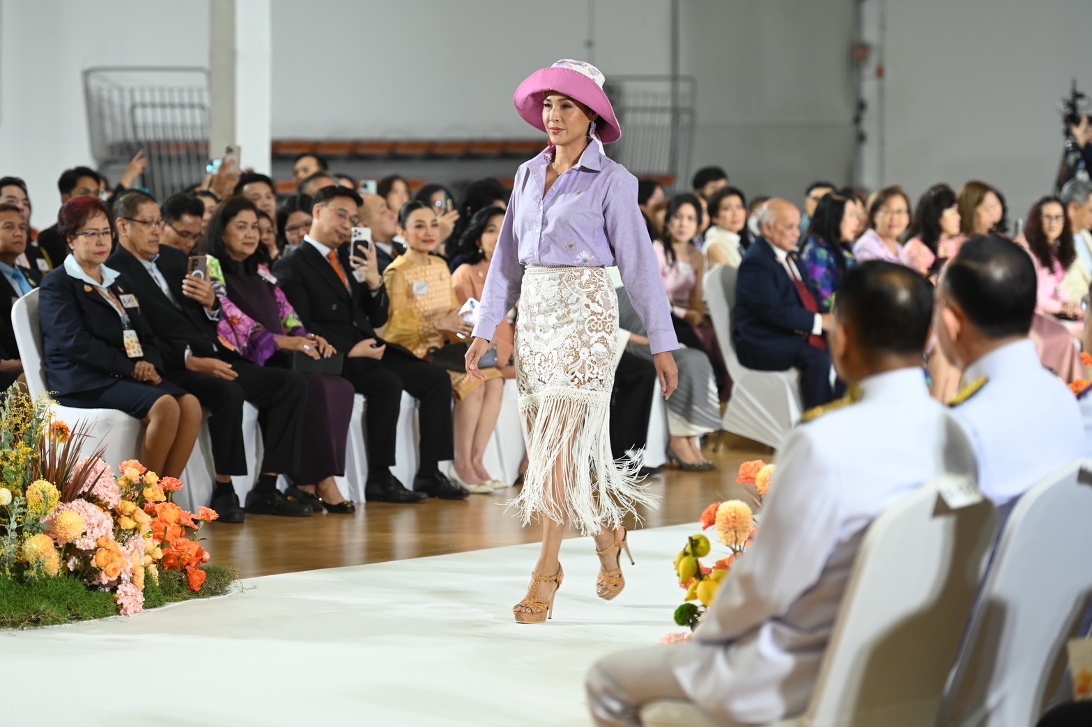 โอกาสนี้พระราชทานพระวโรกาสให้หม่อมหลวงปนัดดา ดิศกุล กรรมการและเลขาธิการมูลนิธิศรีสวางควัฒน ในพระอุปถัมภ์ ฯ กราบทูลรายงานวัตถุประสงค์ของการจัดงาน ฯ และการดำเนินงานของมูลนิธิศรีสวางควัฒน ในพระอุปถัมภ์ ฯ และทอดพระเนตรวีดิทัศน์ HEART of GIVING IN FULL BLOOM สุขแห่งการให้ สานหัวใจแบ่งปัน ดั่งดอกไม้บาน และการเปิดตัวคอลเลกชันผลิตภัณฑ์การกุศลชุดใหม่จากลายภาพวาดฝีพระหัตถ์ดอกไม้และผีเสื้อในศาสตราจารย์ ดร. สมเด็จเจ้าฟ้า ฯ กรมพระศรีสวางควัฒน วรขัตติยราชนารี SIRISILAPIN Art for Life 2025 Flowers and Butterflies Collection ถ่ายทอดความงดงามผ่านการแสดงแบบแฟชั่นโชว์การกุศลจากเหล่าศิลปินดาราพร้อมด้วยนักศึกษาและแพทย์จากราชวิทยาลัยจุฬาภรณ์