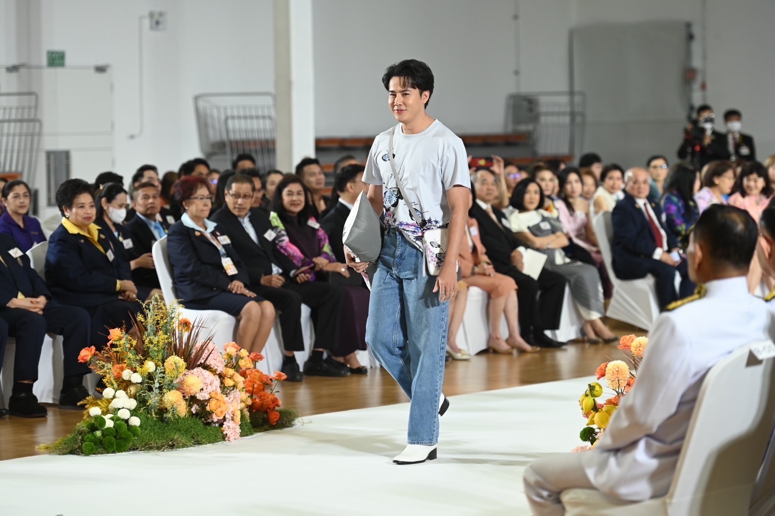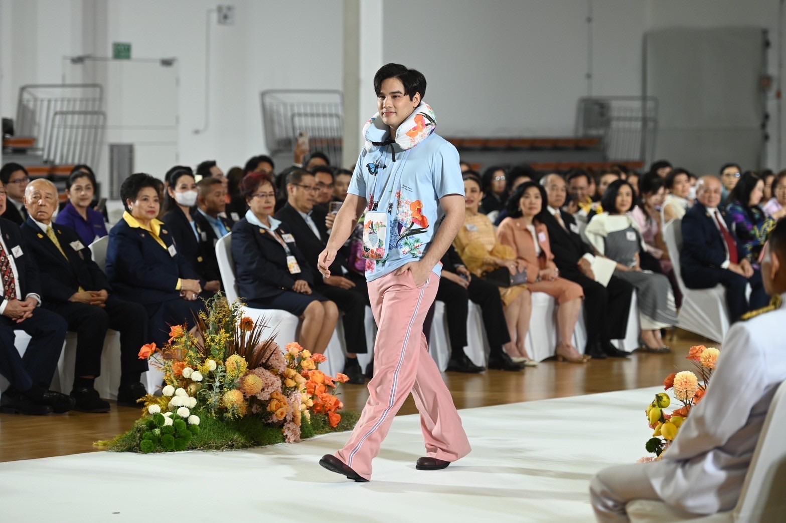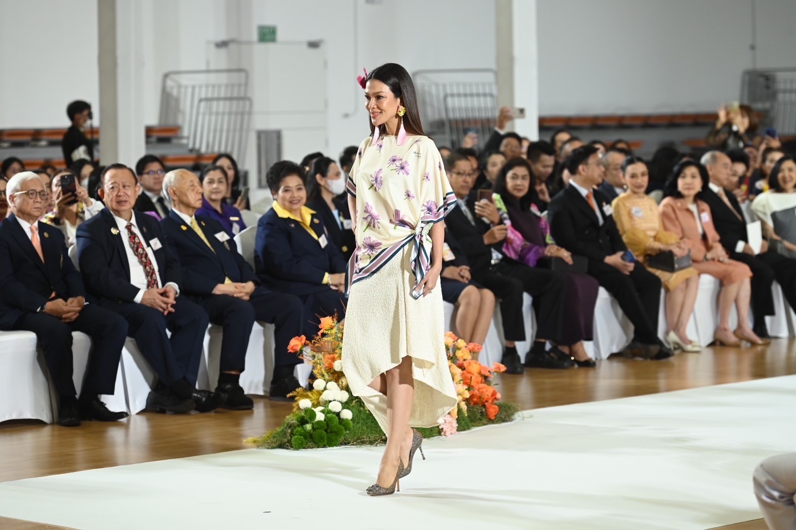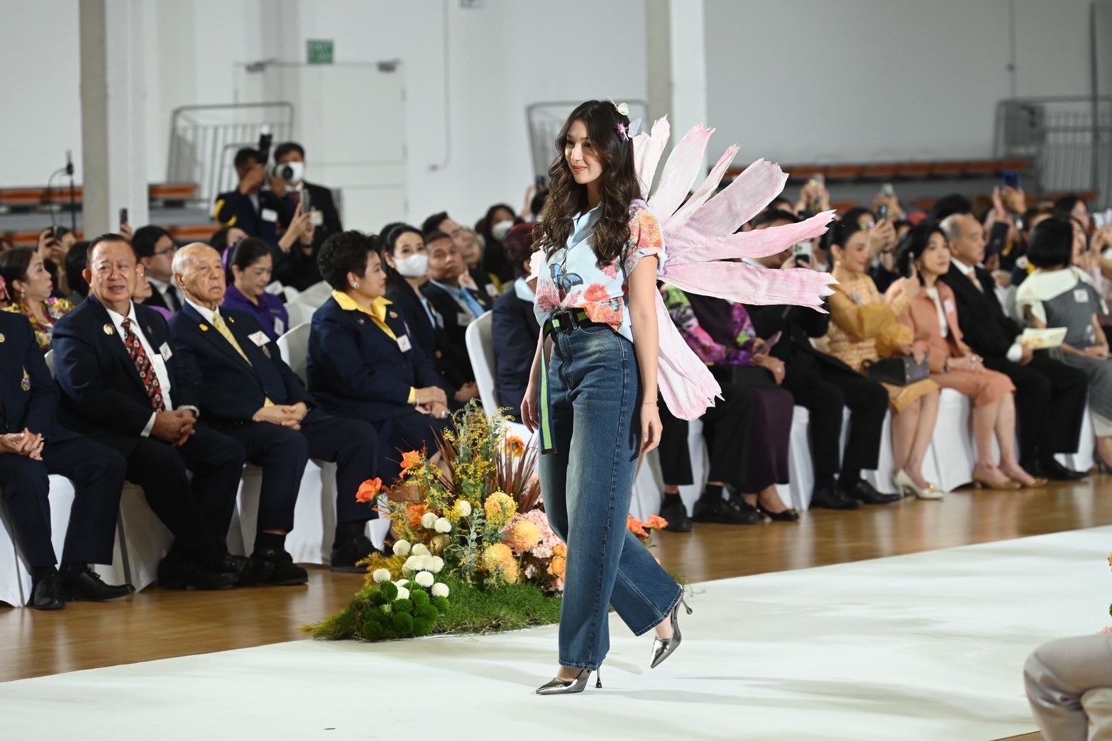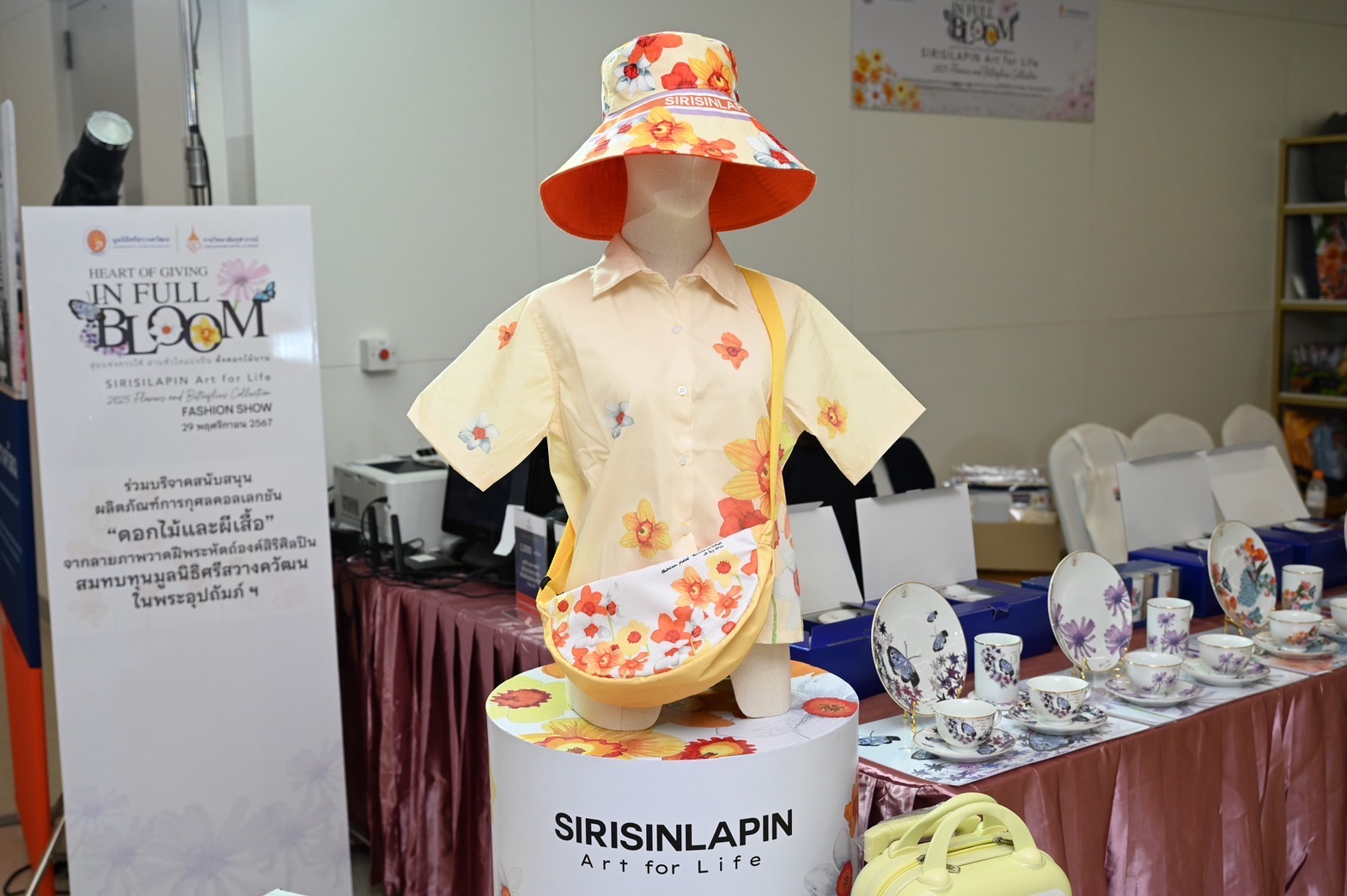 งดงามของผลิตภัณฑ์การกุศลในคอลเลกชันนี้ผ่านการแสดงแบบแฟชั่นโชว์สุดตระการตาด้วยไฮไลท์การแสดงฟินาเล่ดั่งดอกไม้บาน จากศิลปินดารา พร้อมด้วยนักศึกษาและแพทย์จากราชวิทยาลัยจุฬาภรณ์ โดยมี FULL BLOOM MODEL นำโดย เกรซ -กาญจน์เกล้า ด้วยเศียรเกล้า , ฮาน่า – ทัศนาวลัย จักรพงษ์ , หน่อย – บุษกร วงศ์พัวพันธ์ , หมอก้อง – สรวิชญ์ สุบุญ,ปีเตอร์แพน – ทัศน์พล วิวิธวรรธน์, มาริลิน เคท การ์ดเนอร์, ส้มโอ – ยลรตี โคมกลอง, มิล – ศรุต นวประดิษฐกุล , โบ๊ท – ธารา ทิพา , เจิ้น – วีระกฤษณ์ วัชรศรีวราห์ ร่วมแสดงแบบแฟชั่นโชว์การกุศลในคอลเลกชันนี้ซึ่งมีผลิตภัณฑ์หลากหลายไอเทมที่รังสรรค์จากลวดลายภาพวาดฝีพระหัตถ์ “ดอกไม้และผีเสื้อ” อันทรงคุณค่าขององค์สิริศิลปิน อาทิ เสื้อเชิ้ต เสื้อโปโล เสื้อครอป เสื้อยืด กระเป๋าในรูปทรงต่าง ๆ กระเป๋าเดินทาง หมวก ผ้าพันคอ เนคไท หมอนอิง หมอนรองคอ ร่ม ชุดถ้วยจานชามเซรามิค ชุดถ้วยกาแฟ และน้ำหอม ทั้งนี้ ผลิตภัณฑ์คอลเลกชันดังกล่าวเปิดให้ผู้มีจิตศรัทธาได้ร่วมบริจาคเพื่อมอบเป็นของขวัญชิ้นพิเศษให้กับตัวเองและคนที่คุณรักเพื่อส่งต่อความสุขในช่วงเทศกาลต้อนรับปีใหม่นี้ โดยรายได้สมทบทุนมูลนิธิศรีสวางควัฒน ในพระอุปถัมภ์ ฯ เพื่อช่วยเหลือผู้ป่วยที่ขาดแคลนด้อยโอกาส และสนับสนุนการจัดหาเครื่องมือทางการแพทย์ให้กับโรงพยาบาลจุฬาภรณ์ ราชวิทยาลัยจุฬาภรณ์