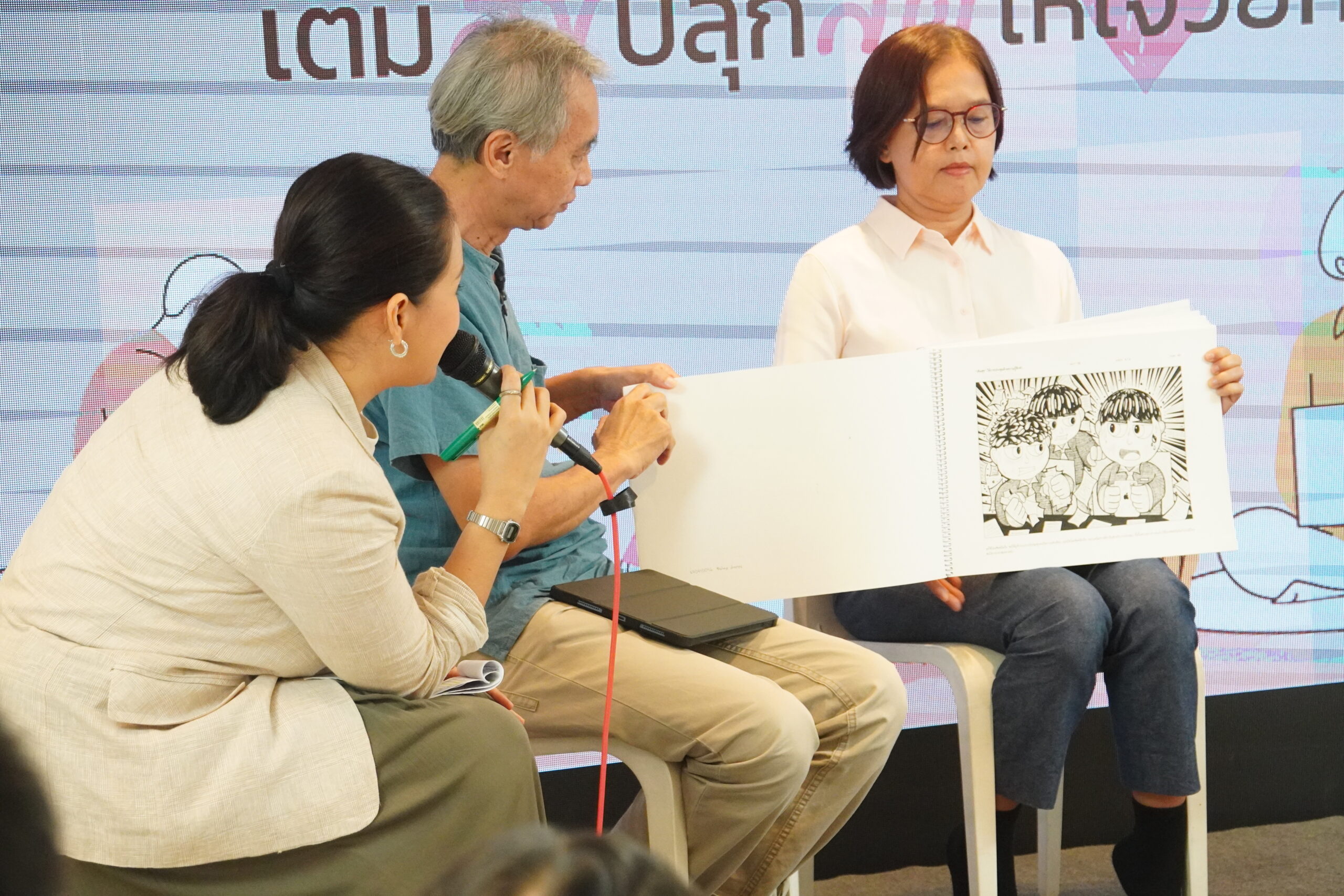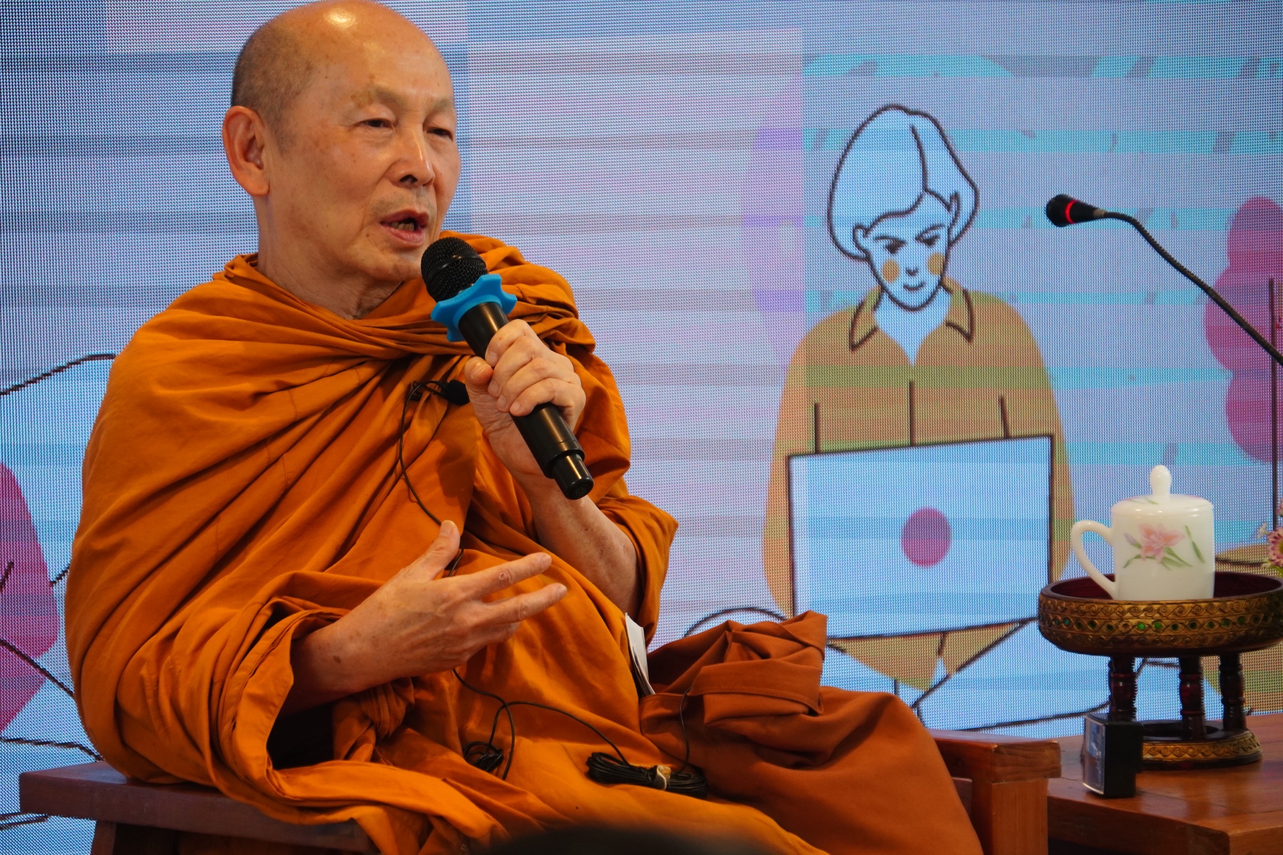 ในส่วนของ อาจารย์ภูษิต รัตนภานพ อาจารย์ประจำคณะมัณฑนศิลป์ มหาวิทยาลัยศิลปากร ตัวแทนคณะทำงานในส่วนของการเขียนภาพประกอบ กล่าวว่า “มูลนิธิเครือข่ายพุทธิกากับมหาวิทยาลัยศิลปากรได้ร่วมมือกันทำงานมาโดยตลอด ครั้งนี้ทางพุทธิกาให้โจทย์เรามาเป็นหลักธรรมต่างๆ ซึ่งในช่วงที่เราทำงานร่วมกันนั้น เป็นจังหวะของช่วงที่เพิ่งเปิดภาคเรียน จึงมอบให้นักศึกษาชั้นปีที่ 1 ส่งโจทย์ธรรมะแต่ละข้อที่ได้มาให้กับเด็กๆ ไป เพื่อให้เขานำไปตีความออกมาเป็นภาพ ซึ่งเมื่อนักศึกษาได้มีส่วนร่วมทำงานนี้ก็เกิดผลดีกับตัวพวกเขาเองที่ได้เกิดการเรียนรู้หลักธรรมในการดูแลใจของเขาไปพร้อมๆ กับการทำงานการตีโจทย์เพื่อให้เกิดเป็นภาพออกมา นั่นคือเขาได้ซึมซับไปแล้ว  และที่สำคัญชิ้นงานของเขาได้เผยแพร่ออกสู่สังคมวงกว้าง ที่ไม่ใช่การการทำงานส่งงานอาจารย์ แต่งานของเราได้เชื่อมโยงกับตัวเอง  และภายนอก ก็ทำให้พวกเขาเกิดความภาคภูมิใจ”