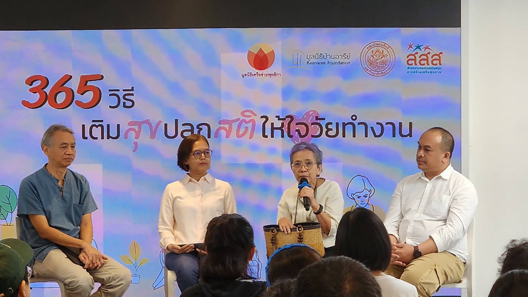 งาน 365วิธี เติมสุขปลุกสติให้ใจวัยทำงาน” จัดขึ้น ณ มูลนิธิบ้านอารีย์ โดยภายในงานมีการบรรยายธรรมพิเศษหัวข้อเติมสุขปลุกสติสำหรับวัยทำงานจาก “พระไพศาล วิสาโล” นอกจากนี้ยังมีการเสวนาแลกเปลี่ยน แนะนำเครื่องมือดูแลใจ โดยวิทยากรหลากหลายท่าน ได้แก่ “วีรพงษ์ เกรียงสินยศ” รองประธานมูลนิธิเครือข่ายพุทธิกา พร้อมด้วย “ชมัยภร บางคมบาง กรรมการบริหารคณะที่ 8 (สสส.) และ  “ภัสน์วจี ศรีสุวรรณ์” ผู้รวบรวม 365 วิธีเติมสุขให้ใจ รวมถึง “ภูษิต รัตนภานพ” อาจารย์ประจำคณะมัณฑนศิลป์ มหาวิทยาลัยศิลปากร ซึ่งในงานมีประชาชนทั่วไปให้ความสนใจเข้าร่วมงานเป็นจำนวนมาก