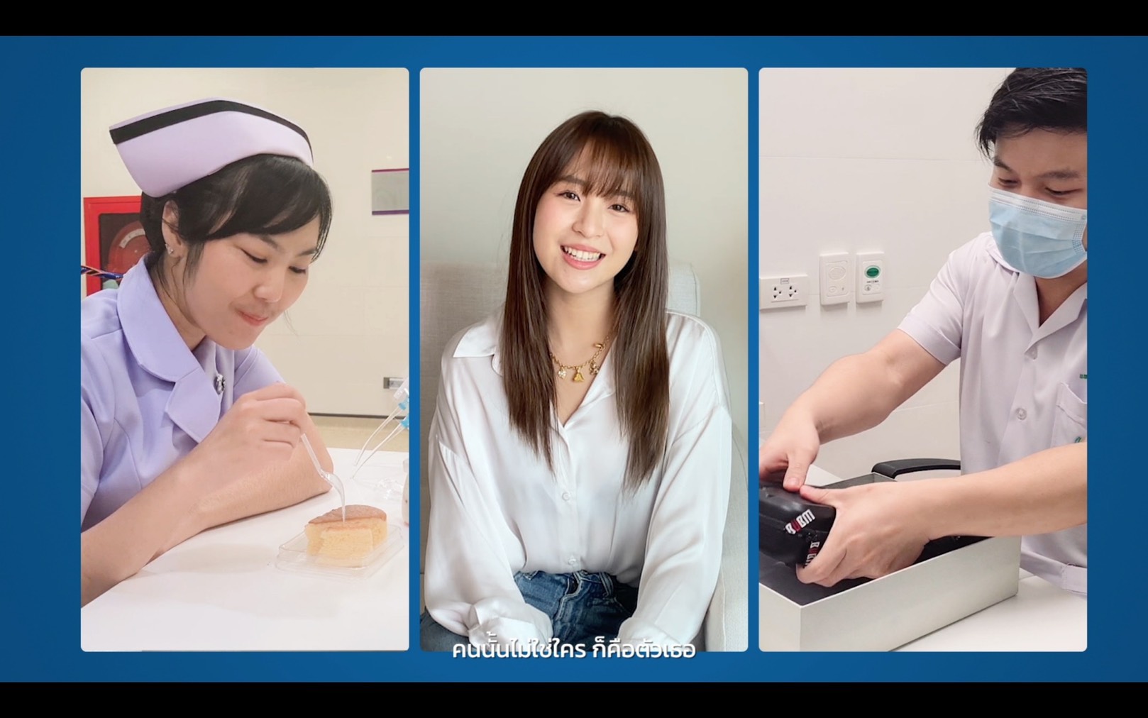 ในส่วนของ MV “อยากให้เธอกอดคนที่ใช่” ได้ถ่ายทอดเรื่องราวจากชีวิตจริง ของ 5 คู่รักจากด่านหน้า อาทิ คุณหมอเดย์ กับ คุณพิ้งกี้(ธรุกิจส่วนตัว), คุณพยาบาลแบม กับ คุณคัตเตอร์(ตำรวจ), คุณหมอตั้ม กับ คุณพยาบาลอุ๋มอิ๋ม, คุณพยาบาลจ๋อมแจ๋ม กับ คุณมีน(พนักงานบริษัท) และคุณพยาบาลบ๋อม กับ คุณฟลุ๊ค(นักศึกษา) มานำเสนอ ซึ่งแม้ว่าจะอยู่ในสถานการณ์ที่ยากลำบาก แต่ก็ยังมีช่วงเวลาดี ๆ ที่ทำให้พวกเขาชื่นใจได้บ้าง