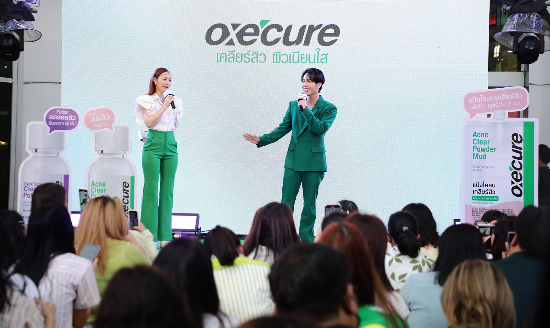 นอกจากนี้ภายในงาน วอร์ ยังเผยความลับเคลียร์สิวผิวเนียนใสสไตล์ “วอร์” ว่า “สำหรับผมการดูแลผิวให้ดีนั้นเป็นเรื่องสำคัญมาก ผมมักจะเริ่มต้นวันใหม่ด้วยการดื่มน้ำเพื่อให้ร่างกายสดชื่นและทำงานได้อย่างมีประสิทธิภาพ และไม่ลืมใช้ครีมกันแดดทุกวันเพื่อปกป้องผิวจากรังสียูวี รวมถึงการรับประทานอาหารที่มีประโยชน์ เพื่อดูแลผิวให้แข็งแรง เพราะช่วงนี้มีหลายปัจจัยที่จะทำให้ผิวหน้าของเรามีปัญหาเรื่องสิวได้ง่าย ไม่ว่าจะเป็นฝุ่นละออง มลพิษ ความเครียด เป็นต้น อย่างตัวผมที่อยู่กับการปั้นดินเป็นเวลานาน ๆ การล้างหน้าให้สะอาดเพียงอย่างเดียวจึงยังไม่พอ ผมจึงเลือกใช้ผลิตภัณฑ์ดูแลรักษาสิวที่เหมาะสำหรับผิวแพ้ง่ายโดยเฉพาะ เช่นถ้าเริ่มเป็นสิวก็จะใช้ Oxe’cure Acne Clear Potion โพชั่นเคลียร์สิว ขวดสีชมพู แต้มบริเวณสิวอักเสบ รวมถึงการใช้ Oxe’cure Acne Clear Powder Mud แป้งโคลนเคลียร์สิวควบคู่ไปด้วย พอสิวหายก็จะใช้ Oxe’cure Dark Spot Clearing Potion โพชั่นลดรอยสิว เพื่อไม่ให้เกิดรอยจุดด่างดำ ซึ่งทุกผลิตภัณฑ์ออกแบบมาเพื่อช่วยดูแลสิวอย่างมีประสิทธิภาพและป้องกันการเกิดสิวใหม่ โดยที่ไม่ระคายเคืองผิวและช่วยให้ผิวเนียนใสขึ้นอีกด้วย”