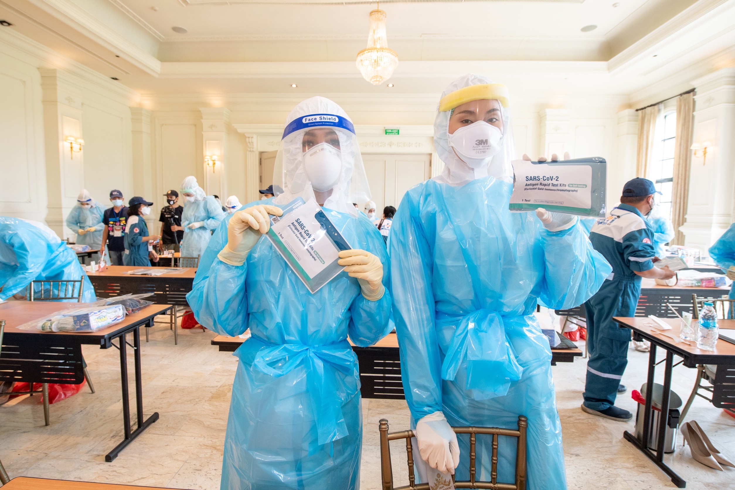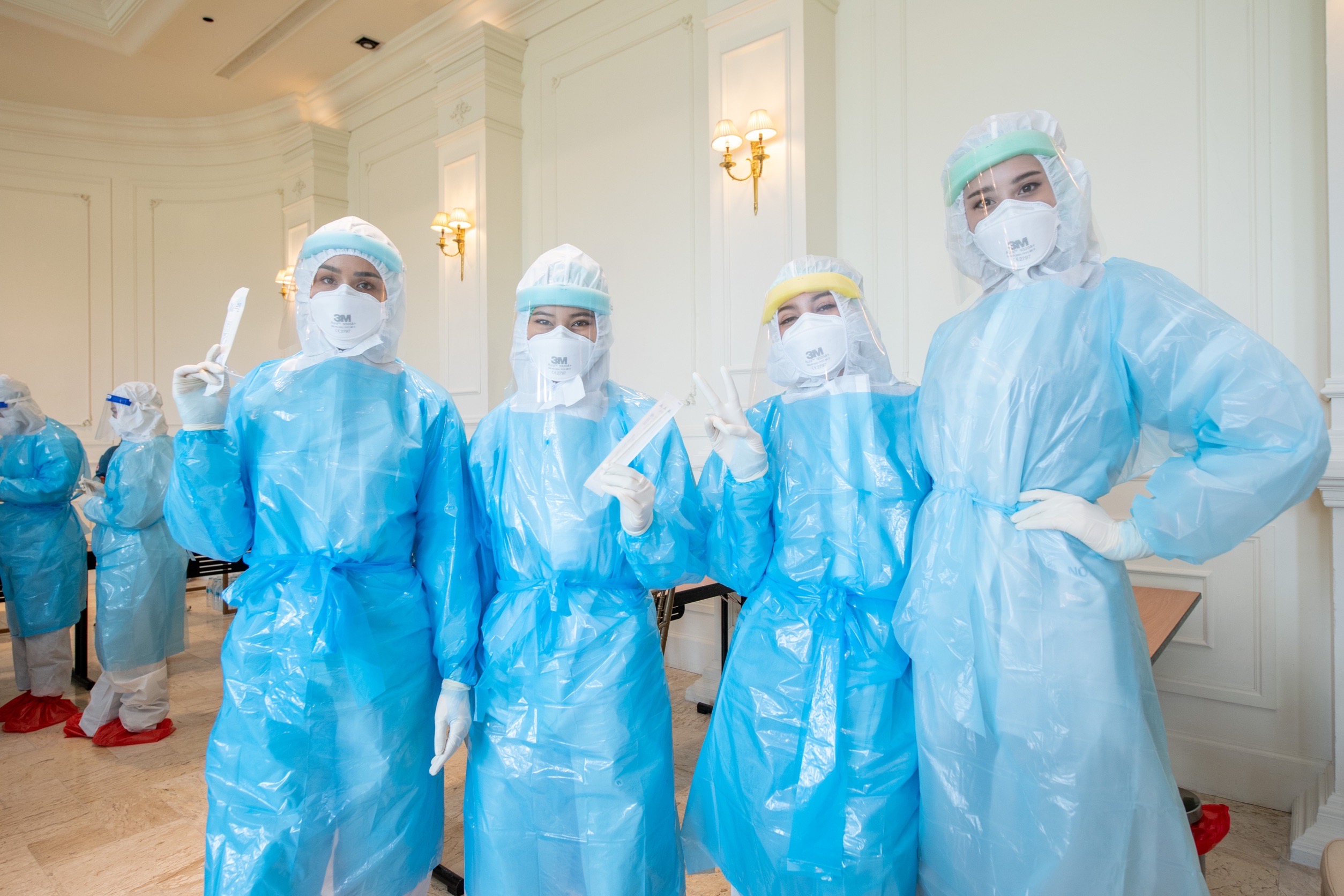 เข้าสู่วันที่ 2 แล้ว กับการเก็บตัวผู้เข้าประกวด มิสยูนิเวิร์สไทยแลนด์ 2021 (Miss Universe Thailand 2021) ทั้ง 30 คน บนเขาใหญ่ จ.นครราชสีมา โดยวันนี้เหล่าสาวงามได้ ได้เรียนรู้วิธีการใส่ชุด PPE, CCE และการตรวจหาเชื้อโรคโควิด-19 ด้วยชุดตรวจ ATK เข้ากับการดำเนินชีวิตในโลกยุค Next Normal ที่มุ่งเน้นเรื่องความปลอดภัยและสุขอนามัยเป็นสำคัญ และสามารถนำไปช่วยเหลือสังคมต่อได้ ณ เมอเวนพิค รีสอร์ท เขาใหญ่ ภายใต้โครงการ ‘Food For Fighters’ หรือ “ข้าวเพื่อหมอ” โครงการดี ๆ ที่เกิดขึ้นมาจากความตั้งใจของ คุณพันชนะ วัฒนเสถียร เจ้าของธุรกิจร้านอาหารเป็นลาว เขาใหญ่ และกลุ่มผู้ประกอบการร้านอาหารที่รวมตัว เพื่อต่อสู้กับวิกฤตโควิด-19 ไปด้วยกัน ไม่ว่าจะเป็น การสนับสนุนช่วยเหลือผู้เดือดร้อนจากโควิด การให้ความรู้ความเข้าใจการป้องการโรคโควิด รวมถึงการระดมทุนจัดซื้ออาหารปรุงสดจากร้านที่เข้าร่วมโครงการ เพื่อช่วยประคับประคองกิจการร้านอาหารขนาดย่อม และนำไปมอบเป็นกำลังใจให้กับบุคลากรทางการแพทย์ซึ่งเป็นด่านหน้าที่ต่อสู้กับโควิด-19