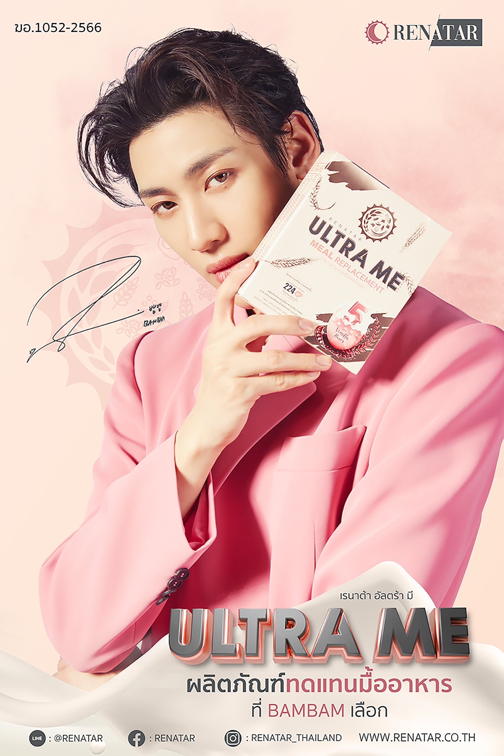 เป็นคนไทยที่ไปดังไกลถึงระดับโลก และยังสร้างความภาคภูมิใจให้เหล่าอากาเซ่ไทยสุดๆ สำหรับศิลปินเกาหลีสัญชาติไทยสุดฮอต “แบมแบม กันต์พิมุก ภูวกุล” หรือ “แบมแบม GOT7” ที่ล่าสุดได้สร้างความเซอร์ไพร้ส์! ด้วยการเปิดตัวเป็นพรีเซ็นเตอร์คนแรกในรอบ 5 ปี ของแบรนด์ RENATAR (เรนาต้า) กับ Renatar Ultra Me ผลิตภัณฑ์ทดแทนอาหาร และ BB Plus ที่มีความมุ่งมั่นตั้งใจยกระดับสุขภาพของผู้บริโภคชาวไทยให้มีสุขภาพที่ดี ภายใต้แนวคิดการดูแลตัวเองทั้งภายใน ภายนอก ในแบบที่เป็นตัวเองในเว่อร์ชั่นที่ดีที่สุด ภายใต้สโลแกน ‘Best of Me’ โดยได้เปิดตัวไปเป็นที่เรียบร้อยแล้ว กับงาน BRAND NEW RENATAR ‘PRESS CONFERENCE’ A MAGICAL SHOWCASE เมื่อวันที่ 27 เมษายน 2566 ณ โซนเอเทรียม ชั้น 3 ศูนย์การค้าเซ็นทรัลเวิลด์