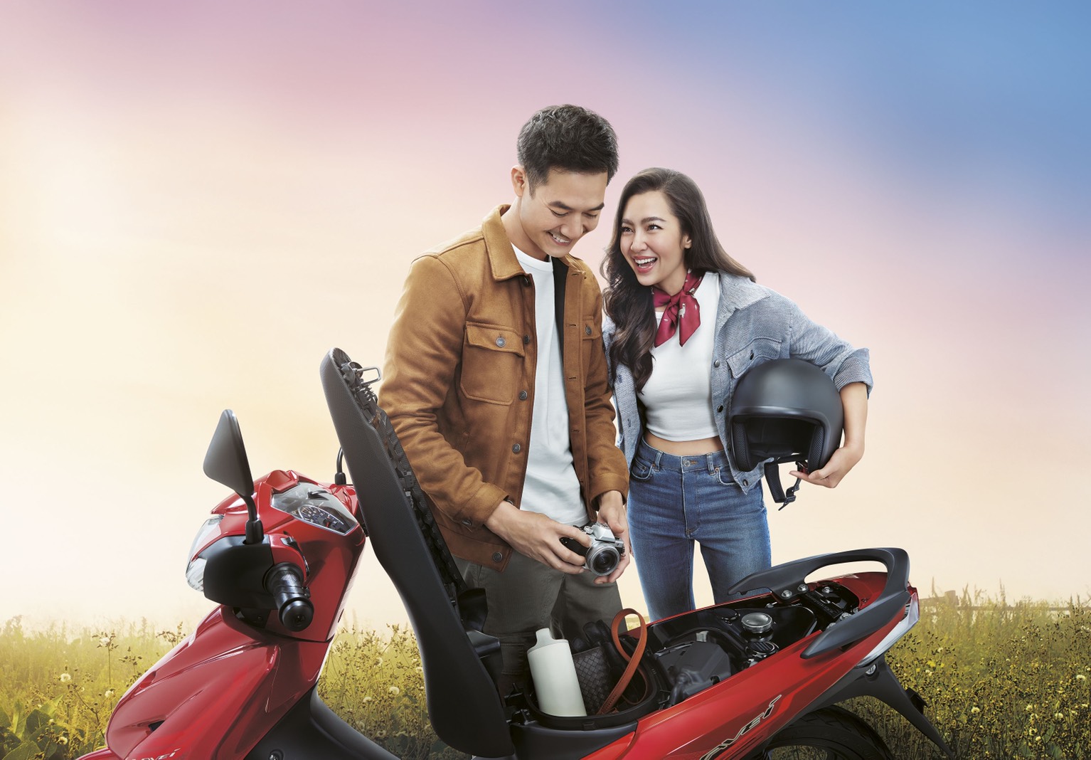 สำหรับงานพรีเซนเตอร์คู่กันให้กับ “All New WAVE110i ใหม่” ในครั้งนี้ พระเอกหนุ่ม “เวียร์” ศุกลวัฒน์ ถึงกับเอ่ยปากว่าตื่นเต้น เพราะต้องพาแฟนสาวซ้อนท้ายมอเตอร์ไซต์ถ่ายโฆษณาครั้งแรก ขณะที่หวานใจอย่าง “เบลล่า” ราณี เผยว่ามั่นใจในทักษะการขับขี่ของแฟนหนุ่ม และรู้สึกโชคดีที่ได้ทำงานและท่องเที่ยวไปพร้อมๆ กัน เรียกว่าเป็นการเก็บความทรงจำที่ดีร่วมกันนั่นเอง .. อ่ะ มีหวาน!