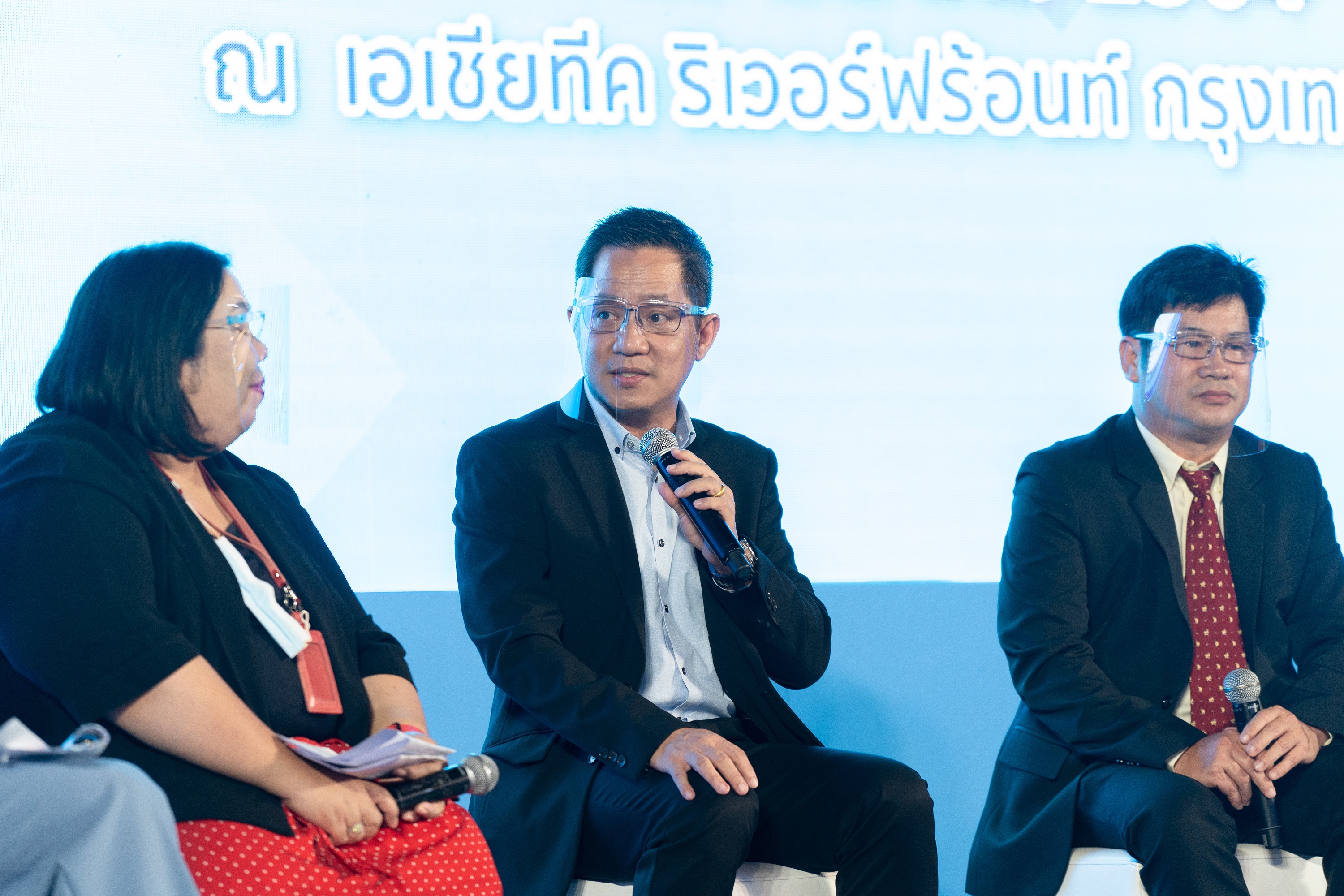 นายเวียงเทพ รัตน์สังข์ (ซ้ายสุด) ผู้จัดการทั่วไป โครงการ เอเชียทีค เดอะ ริเวอร์ฟร้อนท์ สุดยอดจุดหมายปลายทางระดับโลกด้านไลฟ์สไตล์ครบวงจรและสถานที่ท่องเที่ยวด้านศิลปวัฒนธรรมและวิถีชีวิตภายใต้แนวคิด “Living Museum & Art Festival” พร้อมเรือสิริมหรรณพ แลนด์มาร์คใหม่ริมแม่น้ำเจ้าพระยา ร่วมแถลงข่าวในโอกาสที่โครงการเอเชียทีค เดอะ ริเวอร์ฟร้อนท์ ได้รับคัดเลือกจาก กรมการท่องเที่ยว กระทรวงการท่องเที่ยว และกีฬา ให้เป็น “โครงการต้นแบบพื้นที่ท่องเที่ยวปลอดภัยสำหรับนักท่องเที่ยว (Safety Zone)” ประเภท “พื้นที่ท่องเที่ยวที่มนุษย์สร้างขึ้น”
