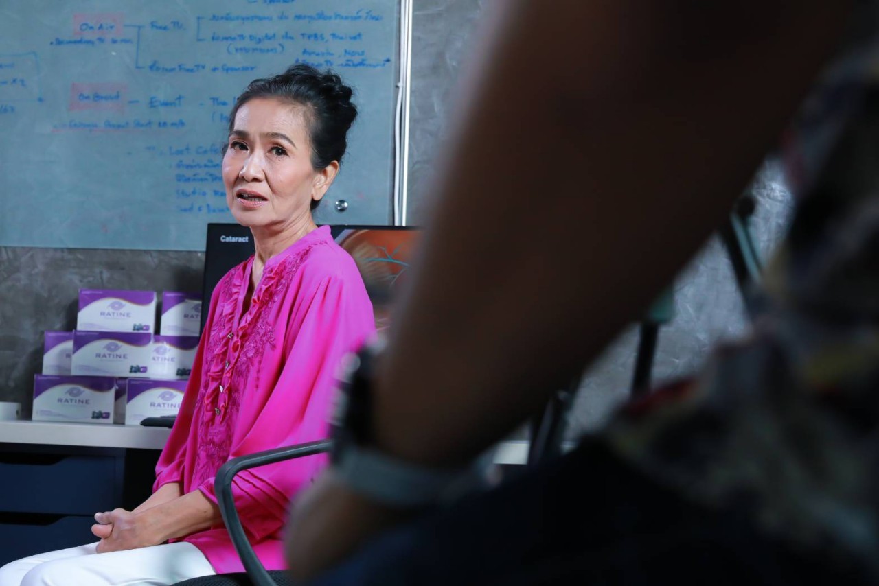 “ตอนนี้ชีวิตสดใสขึ้นกว่าเดิมค่อนข้างมาก เพราะว่ามีความสุขมากขึ้น สุขภาพดีขึ้น มีโอกาสได้เจอเพื่อนฝูงเก่าๆ มากขึ้น แล้วก็เริ่มมีงานเข้ามาบ้าง มันก็เลยทำให้รู้สึกว่าตัวเราเองไม่ได้โดดเดี่ยวอีกแล้ว ที่สำคัญต้องขอบคุณทางผลิตภัณฑ์เสริมอาหารบำรุงสุขภาพดวงตาแบรนด์เรติเน่ (RATINE) ที่เลือกแม่มาเป็นพรีเซ็นเตอร์ และทำให้แม่มีสุขภาพที่ดีขึ้นกว่าเดิม เพราะพอเราอายุมากขึ้น มันทำให้เกิดปัญหาทางสายตา มันเริ่มพล่ามัวมองอะไรไม่ค่อยคมชัดเหมือนเมื่อก่อน อีกทั้งเราก็ไม่ค่อยได้ดูแลตัวเองเท่าไหร่ ไม่มีเงินไปหาหมอ ก็เลยทำให้สุขภาพดวงตาเริ่มทรุดลง แต่พอได้ทานเรติเน่อย่างสม่ำเสมอทุกวัน สุขภาพดวงตาที่เคยแย่ก็เริ่มดีขึ้น มีกำลังใจที่จะต่อสู้กับชีวิต ทำให้แม่รู้สึกว่าอยากอยู่บนโลกนี้ต่อไปอีก ส่วนงานละครต่างๆ เมื่อก่อนแม่คิดว่าคงเล่นไม่ไหวแล้ว เพราะสายตาไม่ดี แต่ตอนนี้สุขภาพดวงตาดีขึ้น ดังนั้นแม่จึงพร้อมรับงานทุกอย่างแล้วค่ะ”