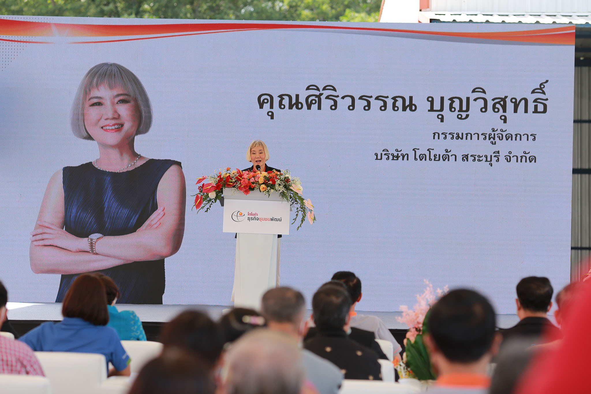 คุณสุรภูมิ อุดมวงศ์ รองกรรมการผู้จัดการใหญ่ บริษัท โตโยต้า มอเตอร์ ประเทศไทย จำกัด คุณศิริวรรณ บุญวิสุทธิ์ กรรมการผู้จัดการบริษัท โตโยต้าสระบุรี จำกัด และคุณอภิศักดิ์ แซ่หลี กรรมการผู้จัดการ บริษัท ลัลณ์ลลิลไบโอเทค จำกัด ร่วมเปิด “ศูนย์การเรียนรู้โตโยต้า ธุรกิจชุมชนพัฒน์ แห่งที่ 6” ณ บริษัท ลัลณ์ลลิลไบโอเทค จำกัด จังหวัดสระบุรี เมื่อวันศุกร์ที่ 11 พฤศจิกายน 2565 ที่ผ่านมา