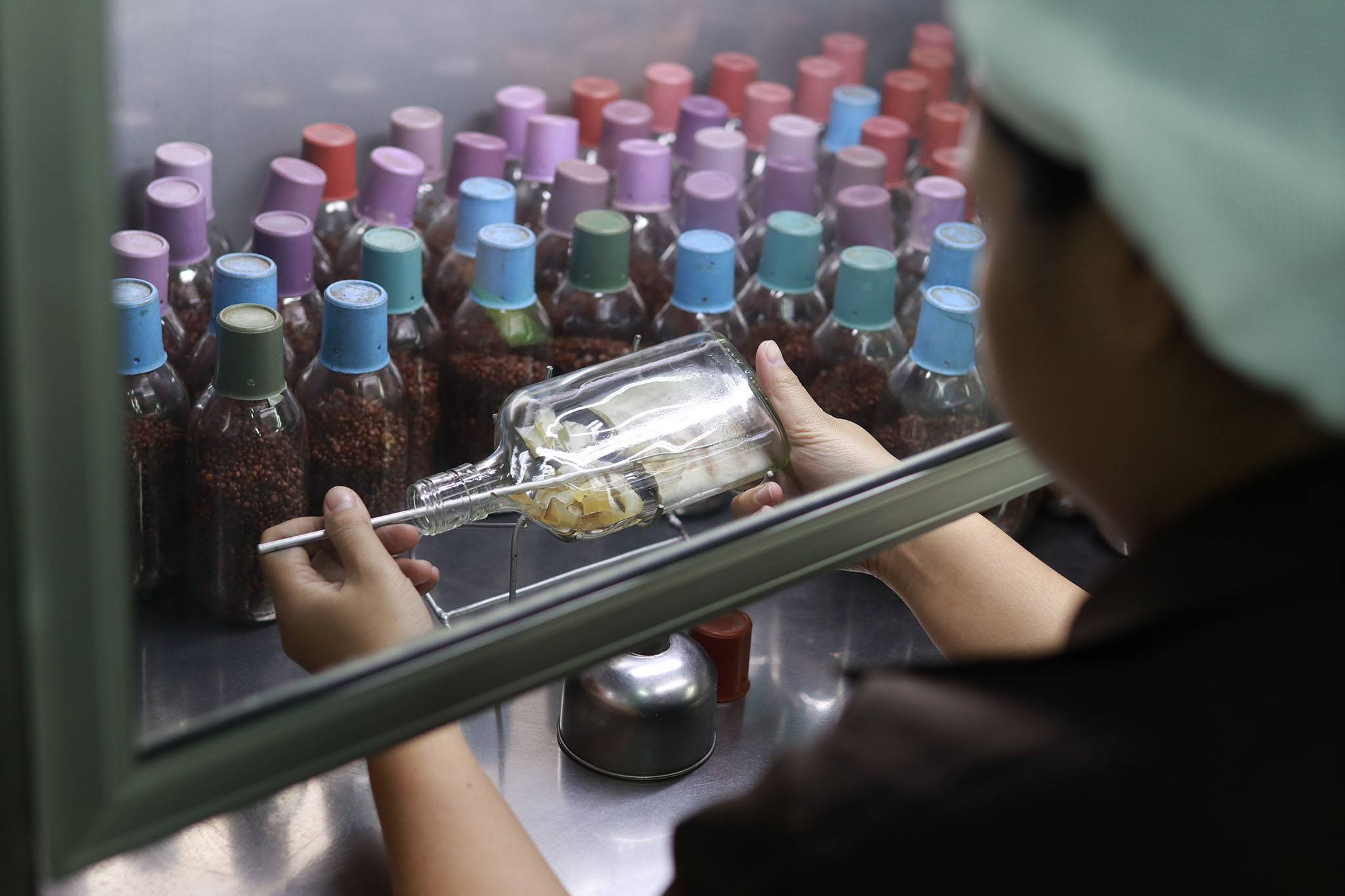 • การผลิตเชื้อเห็ดเหลว เป็นนวัตกรรมที่คิดค้นขึ้นมาใช้กับขวดพลาสติก การผลิตหัวเชื้อต้องเลี้ยงเชื้อบนอาหารวุ้น PDA แล้วตัดชิ้นออกมาเพื่อบรรจุลงไปในขวด ซึ่งการตัดและใส่ขวดชิ้นหนึ่งใช้เวลาค่อนข้างนาน ลัลณ์ลลิลจึงพัฒนาตัววุ้นให้กลายเป็นเชื้อน้ำ แล้วก็ใช้เข็มฉีดยาดูดขึ้นมาเพื่อบรรจุลงขวด ลดเวลาในการผลิตและเพิ่มความสะดวกของลูกค้าในการใช้งานมากขึ้น