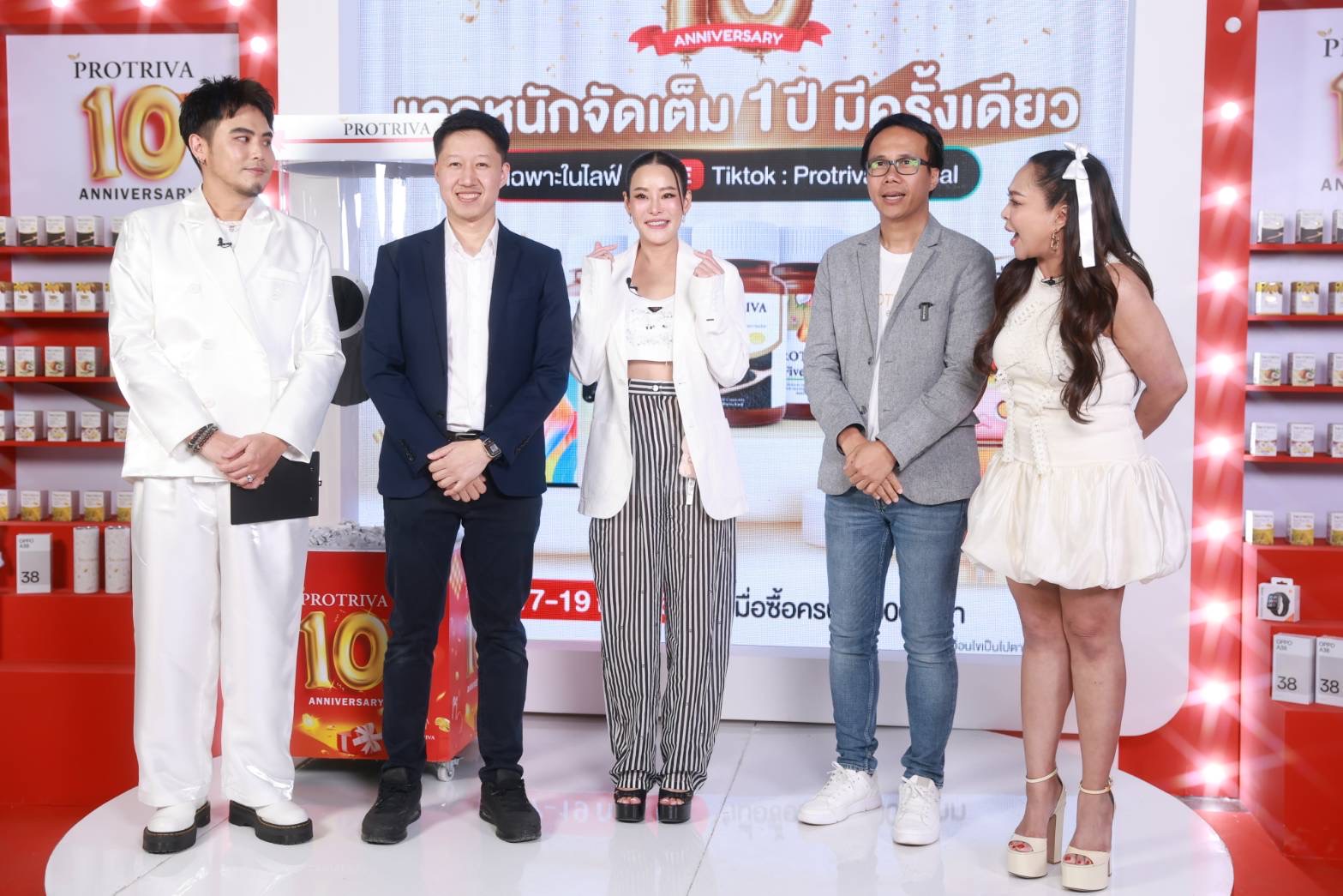 นายสถาพร ปานศักดิ์ และ นายอนัส ประทีปสุวรรณ กรรมการผู้จัดการ บริษัท นิวทริชั่น ไซเอนซ์ แลบบอราทอรี่ (ประเทศไทย) จํากัด เจ้าของแบรนด์โปรทริว่า (PROTRIVA) จัดงาน PROTRIVA 10th Anniversary เพื่อเฉลิมฉลองวาระครบรอบ 10 ปีแบรนด์โปรทริว่า (PROTRIVA) พร้อมตอกย้ำความสำเร็จผลิตภัณฑ์ โปรทริว่า แบล็คซีดส์ ที่มียอดขายทะยานสู่ 5 ล้านกระปุก สุดยิ่งใหญ่ โดยมี 2 พรีเซ็นเตอร์ “หนิง-ปณิตา” และ “อั๋น-ภูวนาท” ร่วมกิจกรรมความสนุก มอบของขวัญและโปรโมชั่นสุดพิเศษให้กับลูกค้าแบรนด์โปรทริว่าแบบจัดเต็ม ร่วมด้วย “ดีเจอ๋อง- เขมรัชต์” ปะทะ “ดีเจดาด้า-วรินดา” ที่ยกทัพมาสร้างสีสัน ณ สตูดิโอมนตรี (สตูดิโอ 8) ซ.ลาดพร้าว 101