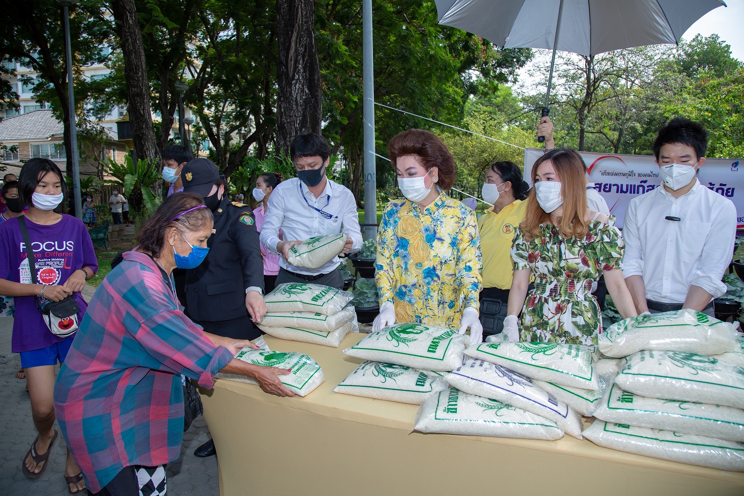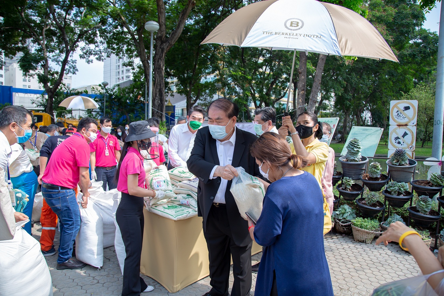 คุณพัชรา วีรบวรพงศ์ รองประธานกรรมการบริหาร โรงแรมเดอะ เบอร์เคลีย์ ประตูน้ำ ในเครือกลุ่มบริษัท สยามแก๊ส แอนด์ ปิโตรเคมีคัลส์ จำกัด (มหาชน) จัดบริจาคข้าวสารอาหารแห้งเพื่อช่วยเหลือประสบความผู้เดือดร้อนจากสถานการณ์ไวรัสโควิด-19 ณ สวนสาธารณะสันติภาพ เขตราชเทวี โดยมี คุณศุภชัย วีรบวรพงศ์ คุณพัชราวดี วีรบวรพงศ์ คุณวัลลภ กมลวิศิษฎ์ และคุณรุจิรา อารินทร์ ผู้อำนวยการเขตราชเทวี มาร่วมแจกด้วย