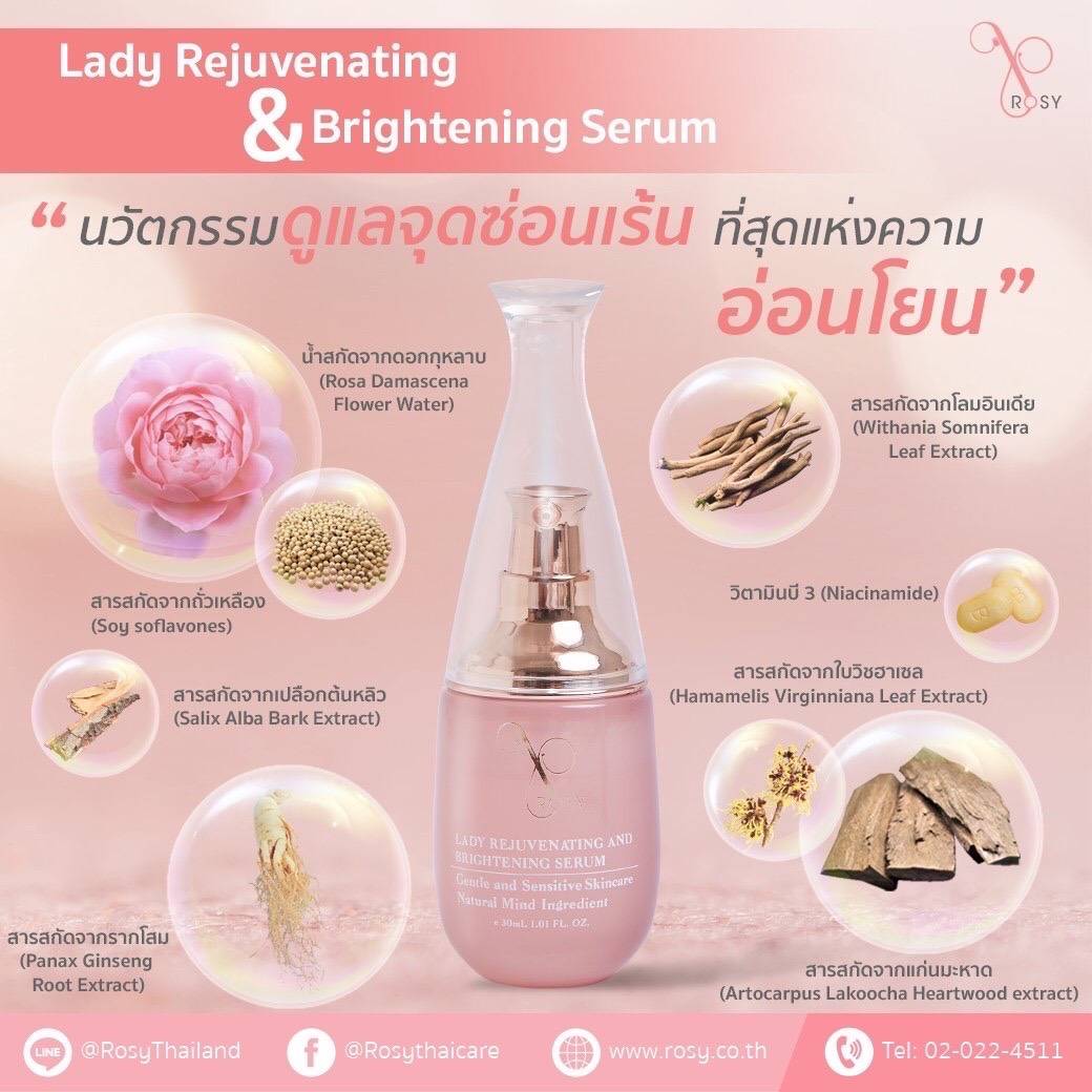 Intimated Advanced Masculine Cleansing ผลิตภัณฑ์ทำความสะอาดผิวผู้ชาย ลดกลิ่นอับ กลิ่นเหงื่อ ลดอาการคัน ฟื้นฟูผิว ชุ่มชื่น กระจ่างใส Lady Rejuvenating and Brightening Serum ผลิตภัณฑ์เซรั่มบำรุงจุดซ่อนเร้น บำรุงผิวบริเวณกลีบกุหลาบ เพิ่มความชุ่มชื่นทันที หลังจากการใช้ครั้งแรก ช่วยให้ผิวกระจ่างใสภายใน 2-4 สัปดาห์ มีงานวิจัยของจุฬาลงกรณ์มหาวิทยาลัยรองรับ เพราะทุกปัญหาจุดซ่อนเร้นของคุณผู้หญิงมีทางออก ให้ผลิตภัณฑ์ ROSY (โรซี่) ดูแลคุณ