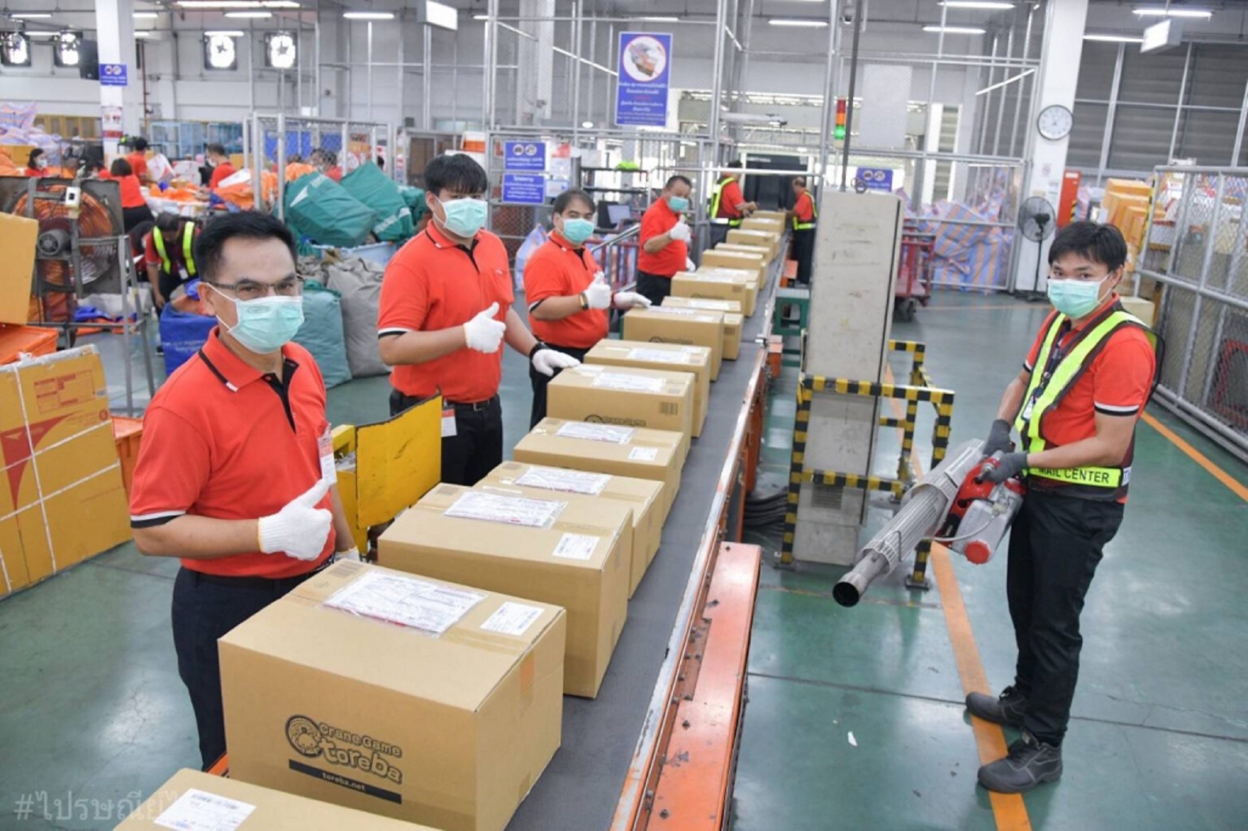 - ศูนย์ไปรษณีย์มีการพ่นน้ำยาฆ่าเชื้อบนพัสดุที่มาจากพื้นที่เสี่ยง โดยเฉพาะพื้นที่ควบคุมสูงสุดและเข้มงวด (พื้นที่สีแดงเลือดหมู หรือแดงเข้ม) พื้นที่ควบคุมสูงสุด (พื้นที่สีแดง) พื้นที่ควบคุม (พื้นที่สีส้ม) รวมถึงพัสดุที่มาจากต่างประเทศ