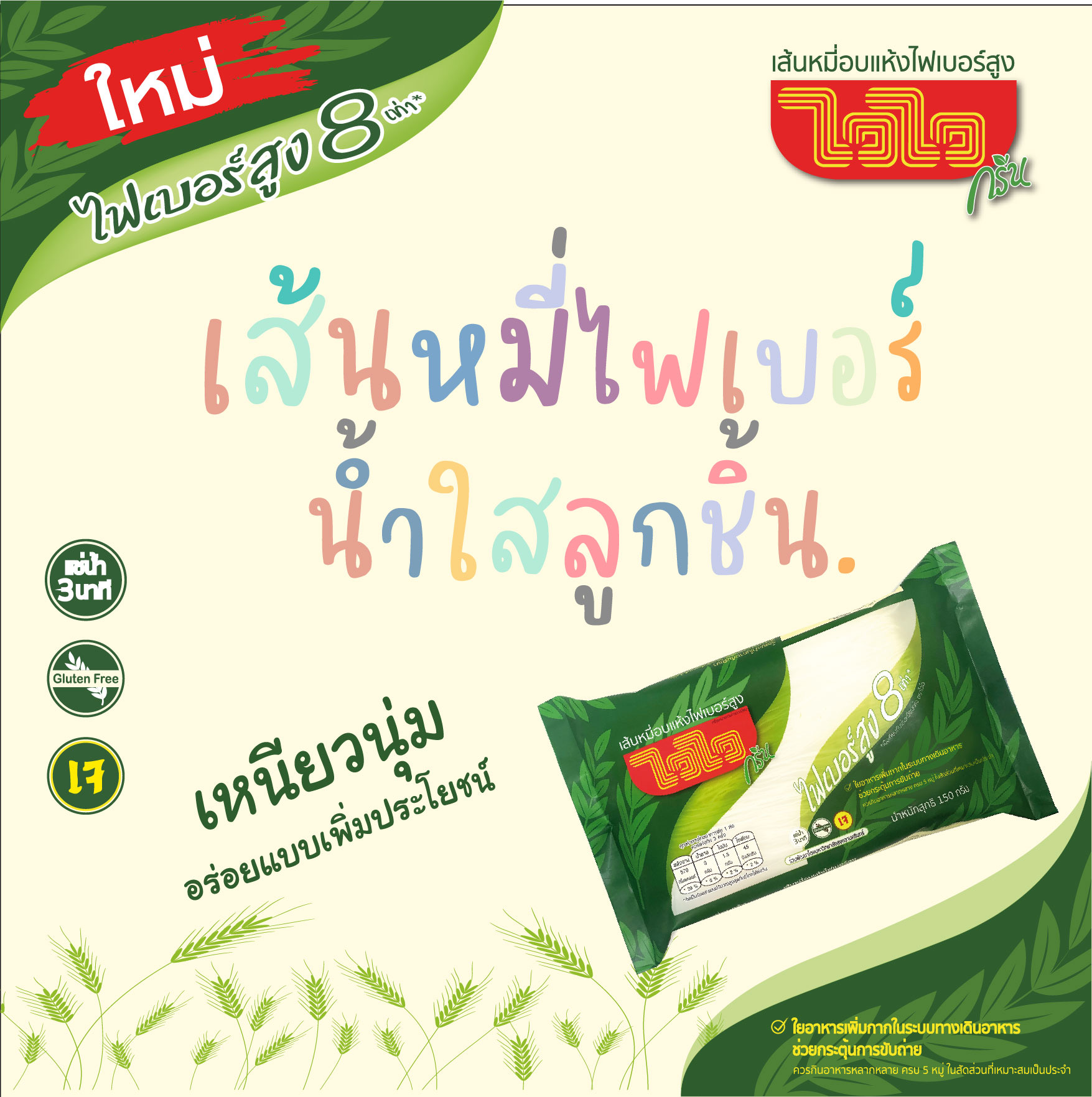 “เส้นหมี่อบแห้งไวไว” ตอกย้ำการเป็นผู้นำตลาด เส้นหมี่อบแห้งที่หนึ่งในใจคู่ครัวไทยทุกบ้านจากรุ่นสู่รุ่น เปิดตัวผลิตภัณฑ์ใหม่ ‘เส้นหมี่ ไวไวไฟเบอร์สูง’ ด้วยคุณประโยชน์ใยอาหารสูงถึง 8 เท่าจากสูตรปกติ ช่วยเพิ่มกากใย เป็นอาหารให้จุลินทรีย์ในลำไส้ สร้างทางเลือกใหม่เอาใจคนชอบเมนูเส้นและรักสุขภาพ