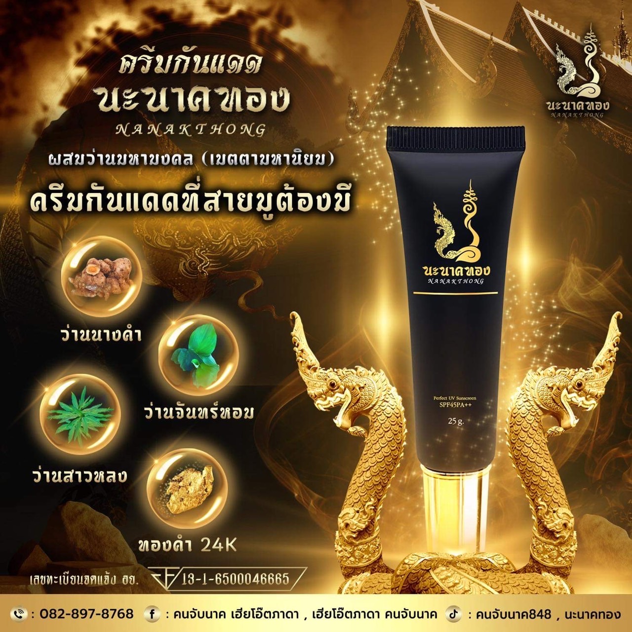 เรียกได้ว่า เป็นโปรเจ็คเปิดตัวสุดยิ่งใหญ่ สำหรับ นะนาคทอง ครีมกันแดด มนต์ตรามหาเสน่ห์ สำหรับผลิตภัณฑ์ที่เกิดจากปาฏิหาริย์ ความเชื่อ ความศรัทธา สู่ที่มา ของการทำธุรกิจ กับ โปรเจ็ค พญานาคคายทรัพย์ บารมีองค์ดำคำแสนสิริจันทรานาคราช ด้วยการอธิฐานจิต ในความรักองค์พญานาค นำส่วนผสมของว่านมหามงคล พัฒนาจนมาเป็นครีมกันแดด ของผู้บริหารมากความสามารถ และจับมือพาสเนอร์ทำธุรกิจ โรงงาน บจก.เอียม พรอฟ ดัน แม่ทีมครีมกันแดด นะนาคทอง ตัวแทนจำหน่ายติดบริษัท40 ท่าน มีรายได้ไปพร้อมกับ เจ้าของแบรนด์ พร้อมลุยตลาดลาว กัมพูชา เวียดนาม