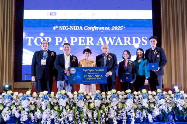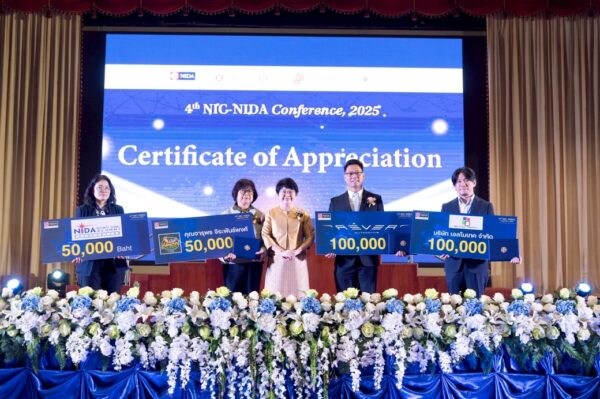 และในวันศุกร์ที่ 29 สิงหาคม 2568 ซึ่งเป็นวันสุดท้ายของงานประชุมวิชาการฯ 4th NIC – NIDA Conference, 2025 ไฮไลท์สำคัญของงานพบกับการปาฐกถาพิเศษ โดย Keynote Speakers ชื่อดังระดับชาติ ได้แก่ 1) Kobsak Pootrakool, Ph.D. (Director and Senior Executive Vice President of Bangkok Bank Public Company Limited, Thailand) และ 2) Assoc. Prof. Juree Vichit-Vadakan, Ph.D. (Chairperson of NIDA Council, Thailand) และ Special Talk สุดพิเศษโดย คุณท็อป – จิรายุส ทรัพย์ศรีโสภา ผู้นำแห่งวงการคริปโทเคอร์เรนซีและผู้ก่อตั้ง Bitkub ที่มาร่วมเจาะลึกในเรื่อง “Economic Resilience through Digital Sustainability” ก่อนจะปิดท้ายช่วงเช้าด้วยการมอบรางวัล Top Paper Awards ระดับชาติและระดับนานาชาติ ประจำปี 2025 มอบโล่รางวัลให้แก่ทีมผู้ชนะเลิศ อันดับที่ 1 – 3 ในโครงการ 2nd International Sustainable Development Debate 2025 และมอบเกียรติบัตรแก่ผู้สนับสนุนการจัดงาน 4th NIC – NIDA Conference, 2025 จำนวน 4 แห่ง ได้แก่ 1) บริษัท เอลโมเทค จำกัด 2) บริษัท Rêver Automotive จำกัด 3) คุณจารุพร จิระพันธ์พงศ์ กรรมการผู้จัดการ ร้านคาเฟ่อเมซอน สาขานิด้า และ 4) สมาคมศิษย์เก่าคณะบริหารธุรกิจ NIDA