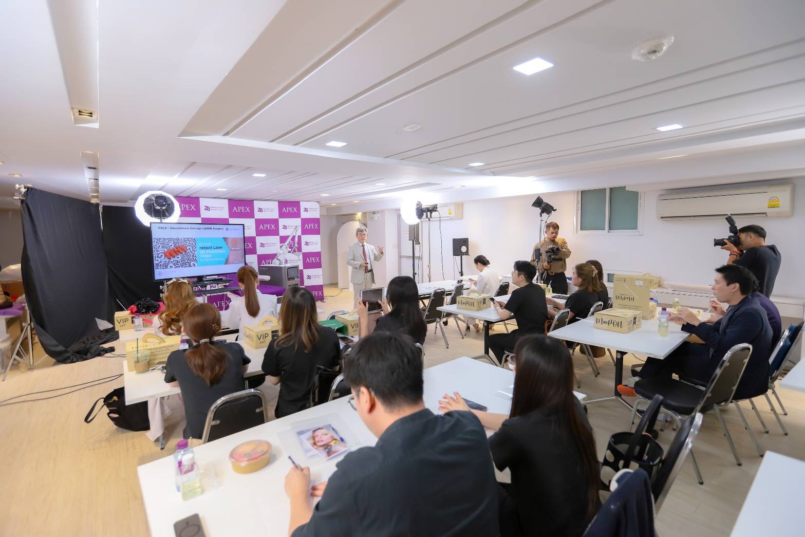 โดยงานนี้ได้รับเกียรติจาก Dr.Jeung Hyun Yoon (จอง-ฮยอน-ยุน) ประธานสมาคมศัลยกรรมความงามและเลเซอร์อุปกรณ์ทางการแพทย์ความงามประเทศเกาหลี เดินทางมาร่วมแชร์ประสบการณ์และเทคนิคทางการแพทย์ให้แก่แพทย์ผู้เชี่ยวชาญประจำ APEX อีกทั้งยังได้ให้คนไทย 10 ท่านแรกในเอเชียที่ได้เข้ามาทดลองสัมผัสกับเครื่องเลเซอร์ AI REEPOT ในงาน EXCLUSIVE TRAINTING ซึ่งจัดขึ้นที่ โรงพยาบาลศัลยกรรมตกแต่งเฉพาะทางเอเพ็กซ์ พร้อมมาร่วมแบ่งปันประสบการณ์การดูปัญหาผิวหน้าในครั้งนี้อีกเช่นกัน