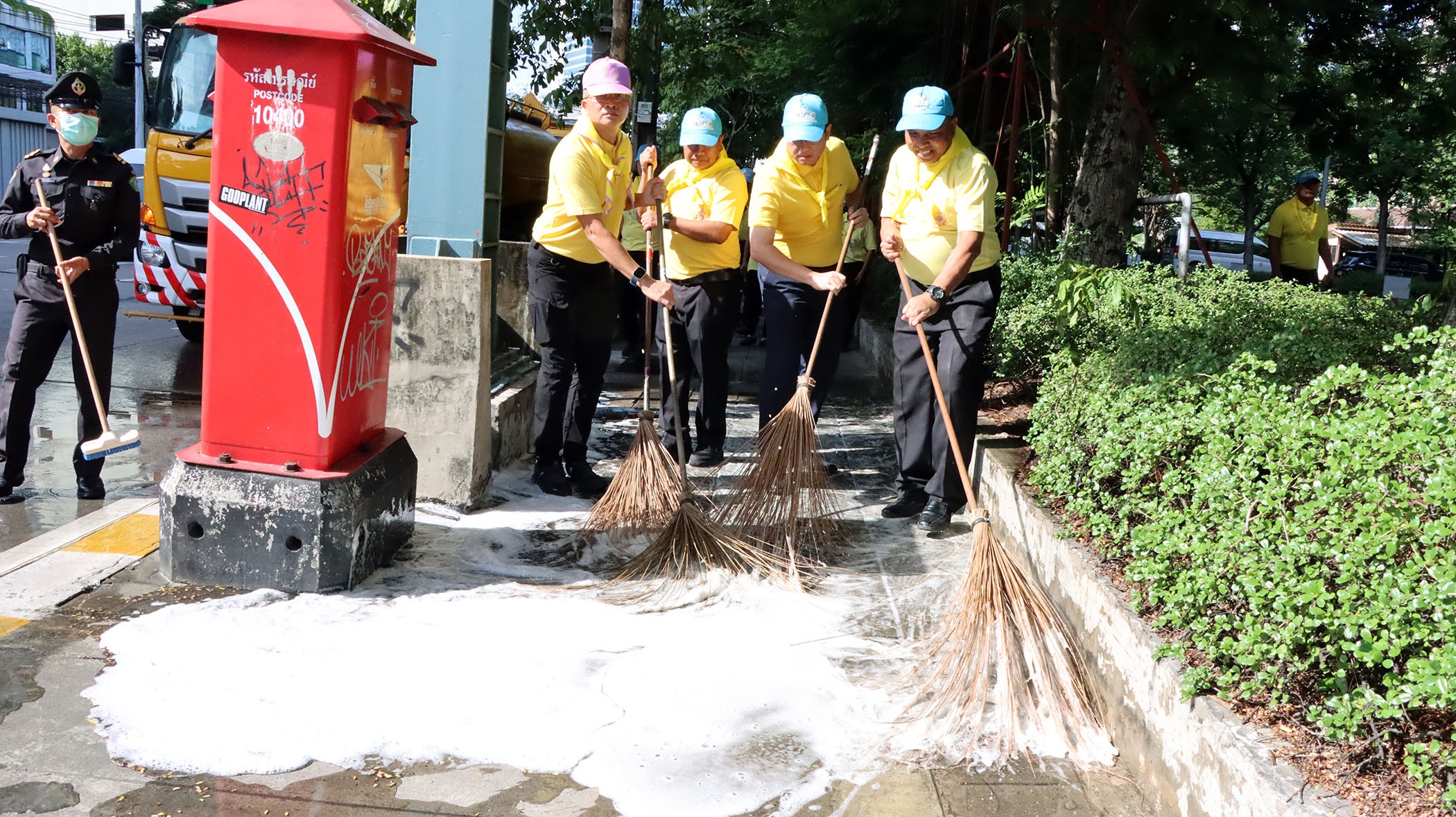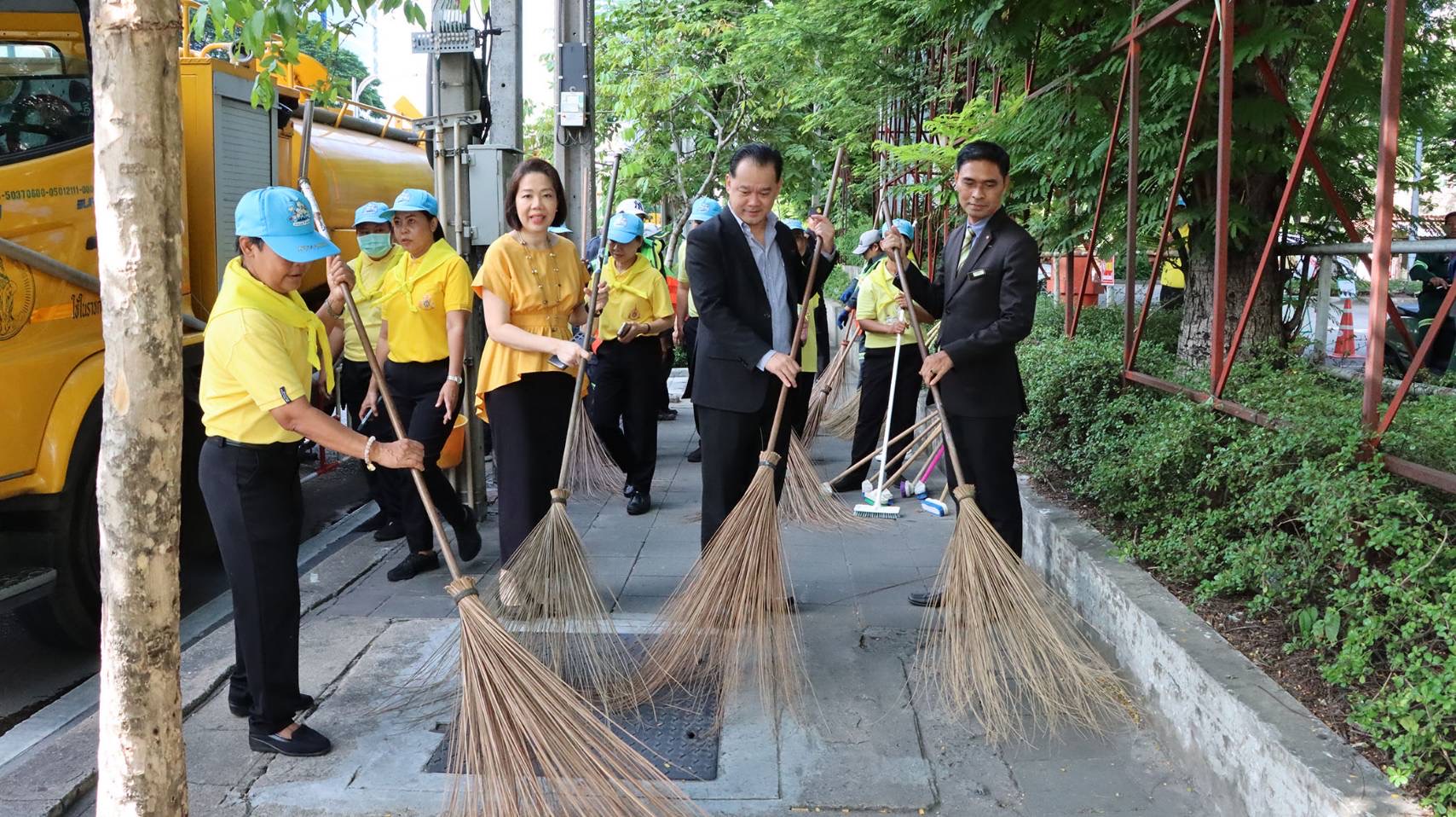 ศุภกฤต บุญขันธ์ รองปลัดกรุงเทพมหานคร เป็นประธานในพิธีเปิดกิจกรรม Big Cleaning Day ล้างทำความสะอาดทางเท้าผิวจราจร ตัดแต่งกิ่งต้นไม้ บริเวณถนนรัชดาภิเษก โดยมี ประเทืองวิทย์ ดีใจ ผู้อำนวยการเขตดินแดง สุโชติ โลหะทรัพย์สกุล ประธานคณะขับเคลื่อนฯ และ ขวัญเรือน เหลียวตระกูล ผู้อำนวยการฝ่ายประชาสัมพันธ์ โรงแรม ดิ เอมเมอรัลด์