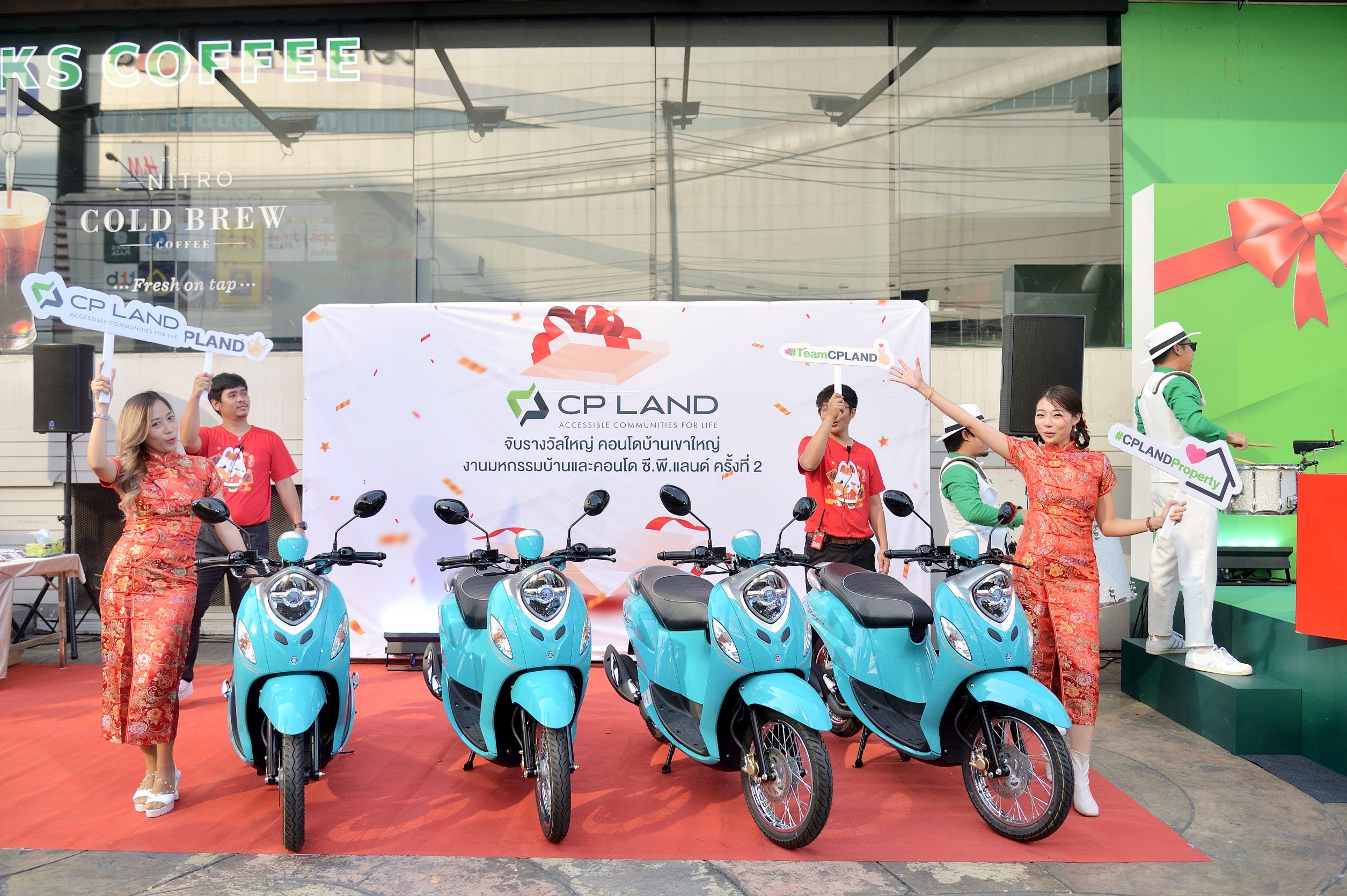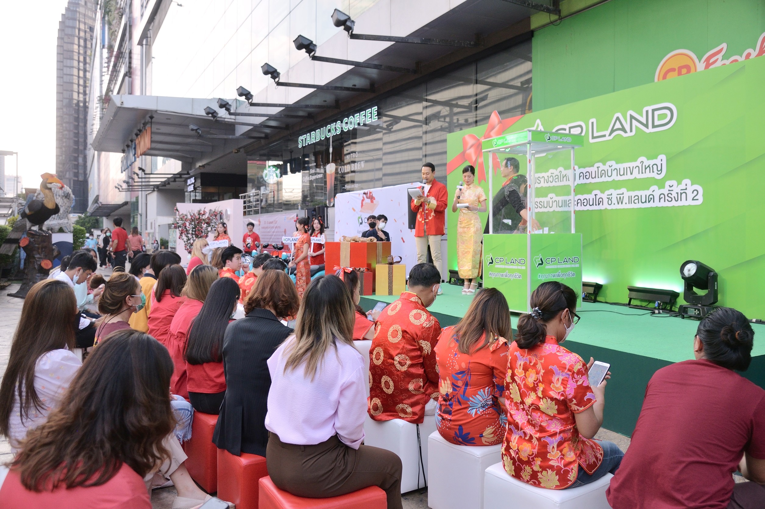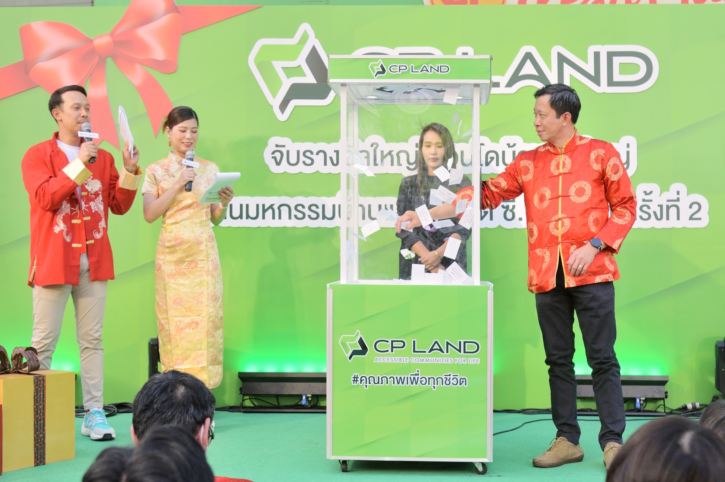 นายกนธีร์ ติรวิภาส กรรมการผู้จัดการใหญ่ บริษัท ซี.พี. แลนด์ จำกัด (มหาชน) หรือ CP LAND นาย นายดำรงศักดิ์ ถุงเงิน รองกรรมการผู้จัดการงานบริหารคอนโดฯและสำนักงานให้เช่า CP LAND นางสาวเนาวรัตน์ ยุกตะนันท์ ที่ปรึกษางานประชาสัมพันธ์ CP LAND ร่วมจับรางวัลงานมหกรรมบ้านและคอนโดบนทำเลศักยภาพกว่า 25 โครงการทั่วประเทศกับ CP LAND ครั้งที่ 2 เพื่อแทนทุกคำขอบคุณลูกค้าที่ไว้วางใจในคุณภาพสินค้าของทาง CP LAND มอบโชคใหญ่รับปีใหม่ 2566 รางวัลใหญ่ “คอนโดมิเนียม บ้านเขาใหญ่” รถจักรยานยนต์ และรางวัลอื่นๆ อีกมากมาย รวมมูลค่ากว่า 2.7 ล้านบาท ณ ลานฟอร์จูนสตรีท หน้าศูนย์การค้าฟอร์จูนทาวน์