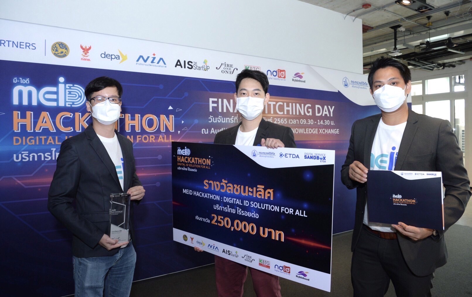 สำนักงานพัฒนาธุรกรรมทางอิเล็กทรอนิกส์ (สพธอ.) หรือ ETDA (เอ็ตด้า) (Electronic Transactions Development Agency) กระทรวงดิจิทัลเพื่อเศรษฐกิจและสังคม จับมือพาร์ทเนอร์ ภาครัฐ เอกชนและ Regulator จัดใหญ่การแข่งขัน “MEiD Hackathon : Digital ID Solution forAll บริการไทย ไร้รอยต่อ” เฟ้นหาสุดยอดนวัตกรรมดิจิทัลไอดี เชื่อมทุกบริการไทย ทีมUpPass เจ้าของนวัตกรรม No-Code Verification Onboarding platform นวัตกรรมที่เชื่อมโยงระบบฐานข้อมูลภาครัฐ ยกระดับการพิจารณาสินเชื่อออนไลน์ ครองแชมป์ รับเงินรางวัล 250,000บาท พร้อมโล่เกียรติยศและโอกาสทดสอบนวัตกรรมกับ ETDA Sandbox