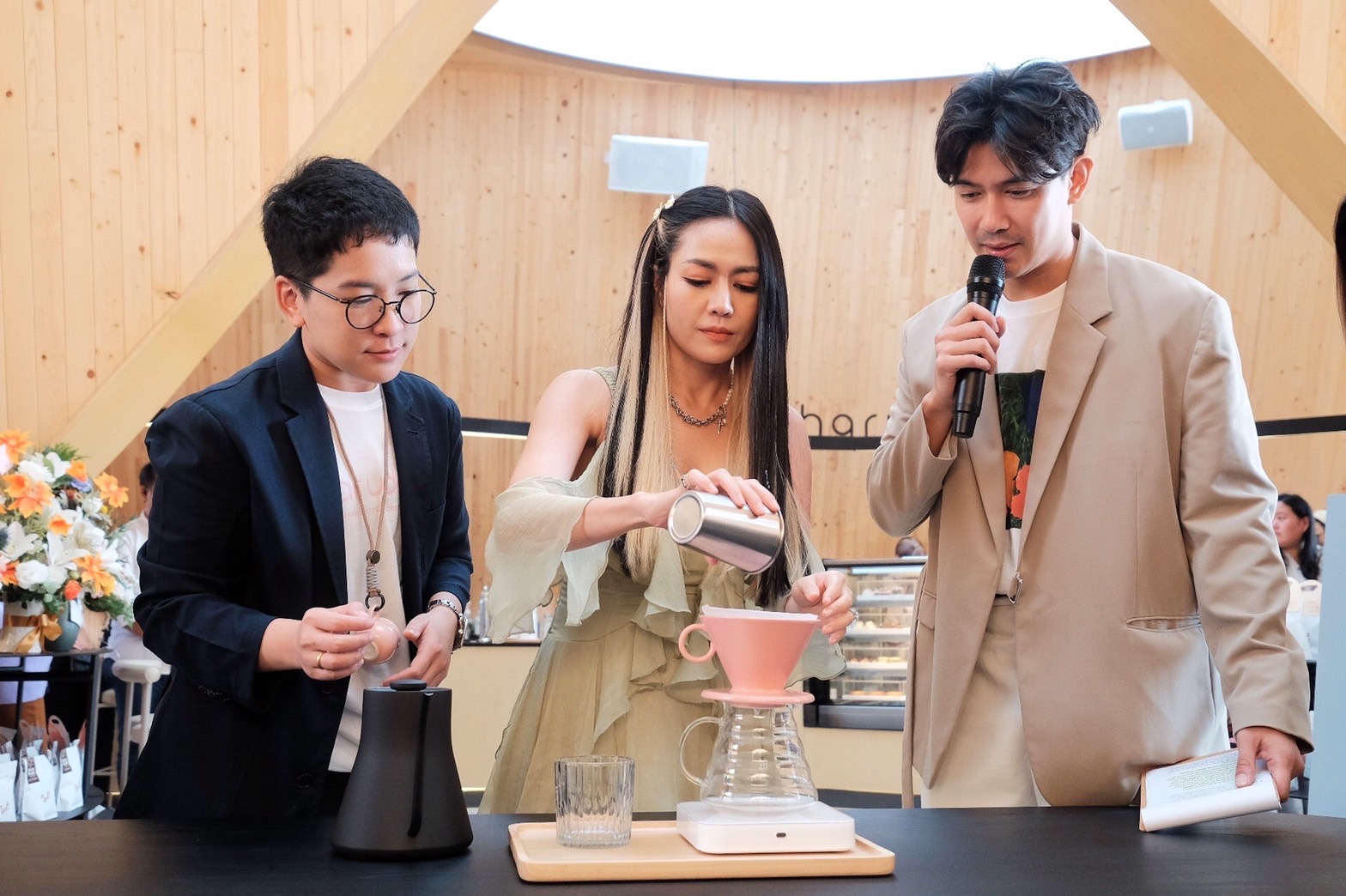 ภายในงานอบอวลไปด้วยกลิ่นไอความหอมกรุ่น ละมุนของกาแฟ โดยได้รับเกียรติจาก “ครูกุ้ง – วรงค์ ชลานุชพงศ์” ผู้บริหารและเจ้าของแบรนด์ NANA COFFEE ROASTERS มาร่วมพูดคุยถึงแนวคิดของการขยายธุรกิจเปิดตัวสาขาใหม่ที่จังหวัดชลบุรี นอกจากนี้ยังมีนักร้องสาวDIVA “นิว นภัสสร ภูธรใจ” ได้มาลองรังสรรค์เมนูกาแฟซิกเนเจอร์ของ HARUDOT BY NANA COFFEE ROASTERS สาขาชลบุรีร่วมกับทีมบาริสต้า พร้อมแชร์ประสบการณ์เมนูกาแฟหลากหลายรสชาติ และเรื่องราวน่ารักๆ ในช่วง ARTS&MUSIC THERAPHY หัวข้อ “จุดเริ่มต้นจากเมล็ด..เล็ก..เล็ก” โดยมีนิวDIVAสาวโชว์บทเพลงไพเราะสร้างแรงบันดาลใจ ส่งต่อความสุข ในบรรยากาศสุดสร้างแรงบันดาลใจ!! และสาวนิวยังเตรียมผลงาน “รูปต้นไม้กาแฟ” จากฝีมืองานอาร์ตสะบัดปลายพู่กันของเธอเอง มอบเป็นของขวัญให้ครูกุ้งในโอกาสพิเศษนี้ด้วย โดยมี “เป๊ก เปรมณัช สุวรรณานนท์” ผู้ที่มีความชื่นชอบในงานสถาปนิกและการออกแบบรับหน้าพิธีกร