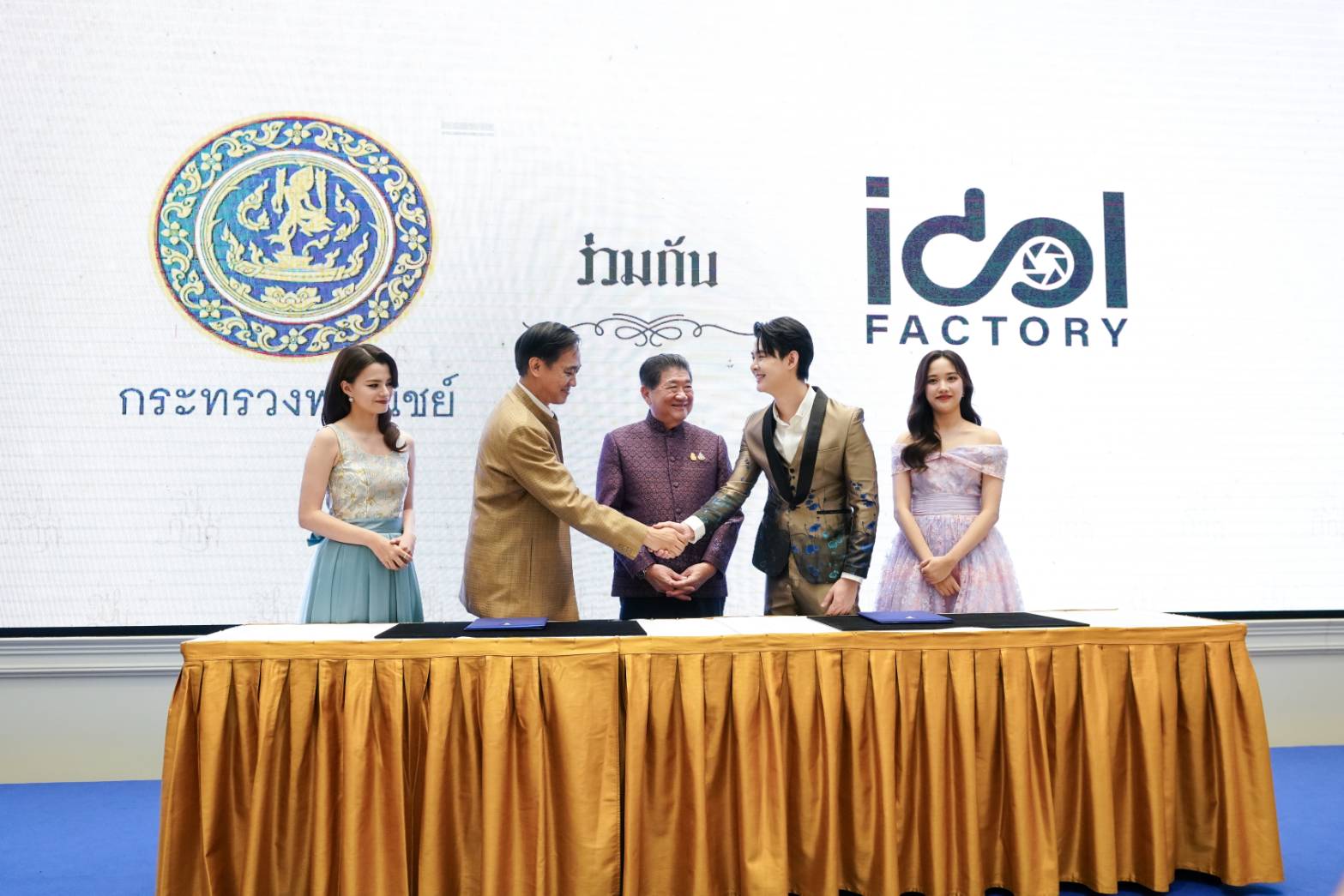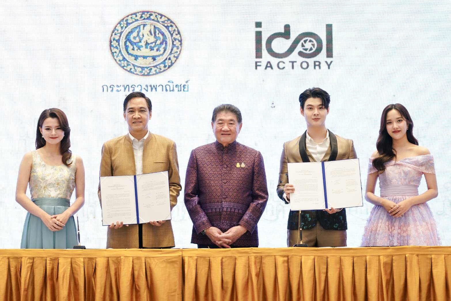 เมื่อวานนี้ ณ กระทรวงพาณิชย์ นายภูมิธรรม เวชยชัย รองนายกรัฐมนตรีและรัฐมนตรีว่าการกระทรวงพาณิชย์ มาร่วมเป็นสักขีพยานในการลงนามบันทึกแสดงเจตจำนงความร่วมมือ Memorandum of Intent (MOI) “การผลักดันสินค้าและบริการไทยสู่สากลผ่านซีรีส์ยูริ (Girls’ Love) ระหว่าง กระทรวงพาณิชย์ และ บริษัท ไอดอลแฟคทอรี่ จำกัด โดยมี นายกีรติ รัชโน ปลัดกระทรวงพาณิชย์ และ นายศุภพงษ์ อุดมแก้วกาญจนา ผู้บริหารไอดอลแฟคทอรี่ ลงนามร่วมกัน และมี นายอัครนันท์ กัณณ์กิตตินันท์ สมาชิกสภาผู้แทนราษฎร, นายคเชนทร์ สดโพธิ์ ผู้บริหารไอดอลแฟคทอรี่ ร่วมงานด้วย เพื่อหวังสร้างแรงกระเพื่อมให้กับสินค้าชุมชนของไทยด้วยการนำสินค้าและผลิตภัณฑ์ฝีมือคนไทยเข้าไปอยู่ในฉากต่าง ๆ ของซีรีส์เรื่อง “ปิ่นภักดิ์” (The Loyal Pin ) นำแสดงโดย 2 สาวคู่จิ้นเคมีแรง “เบ็คกี้ – รีเบคก้า แพทรีเซีย อาร์มสตรอง” และ “ฟรีน – สโรชา จันทร์กิมฮะ” ที่โด่งดังมาจากซีรีส์ Girls’s Love เรื่องแรกของไทยอย่าง “ทฤษฎีสีชมพู” (GAP The series) จนตอนนี้มีแฟนคลับมากมายในหลายประเทศ โดยการลงนามครั้งนี้ทางไอดอลแฟคทอรี่มุ่งหวังอยากเป็นส่วนหนึ่งที่จะสามารถช่วยผลักดันให้สินค้าชุมชนรวมถึงวัฒนธรรมต่างๆของไทยได้เป็นที่รู้จักอย่างแพร่หลายมากยิ่งขึ้น