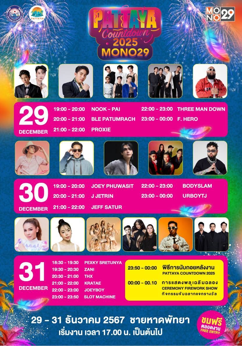 โดยศิลปินต่าง ๆ ที่จะมามอบความสุข ใน “PATTAYA COUNTDOWN 2025” (พัทยา เคาท์ดาวน์ 2025) ดังนี้