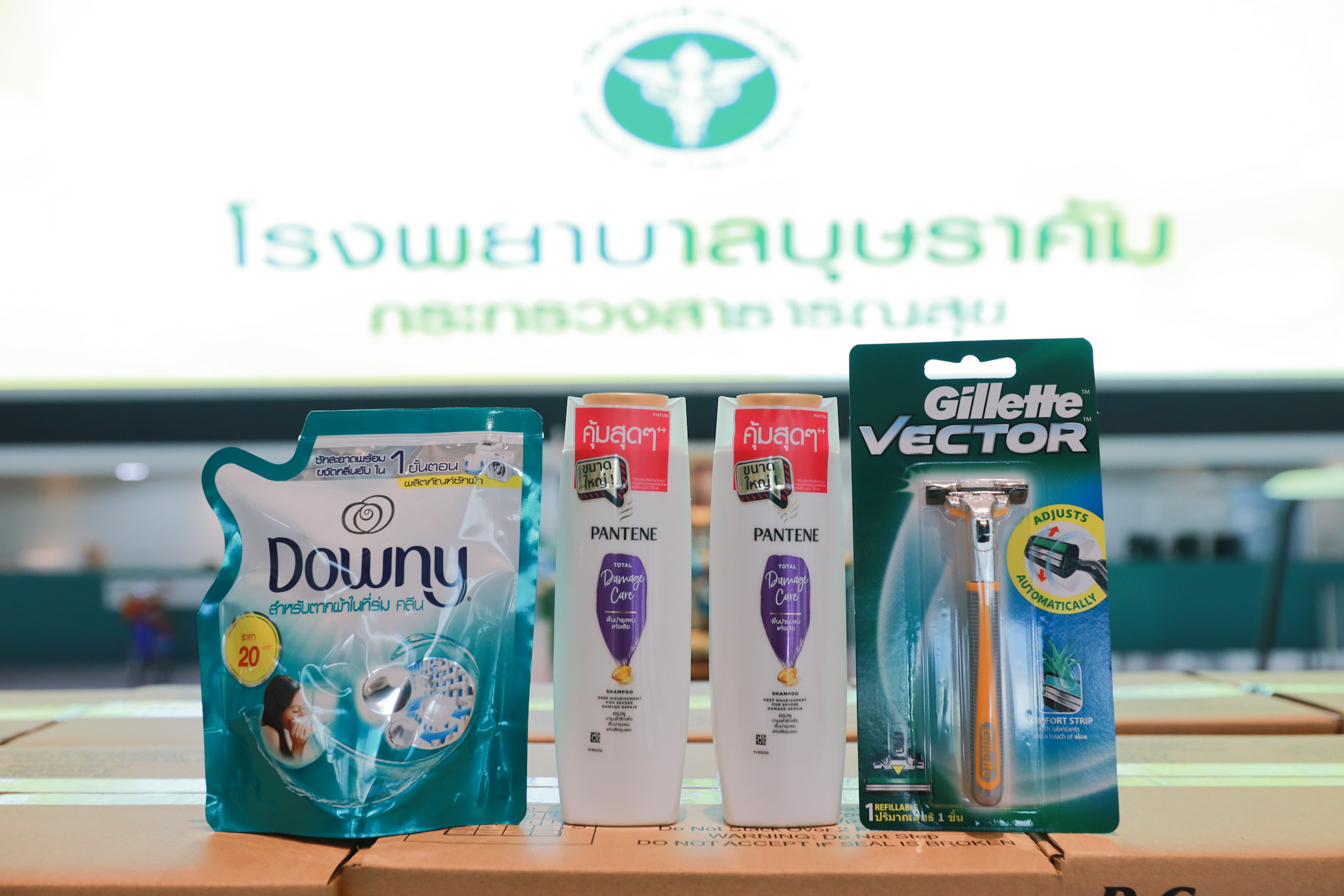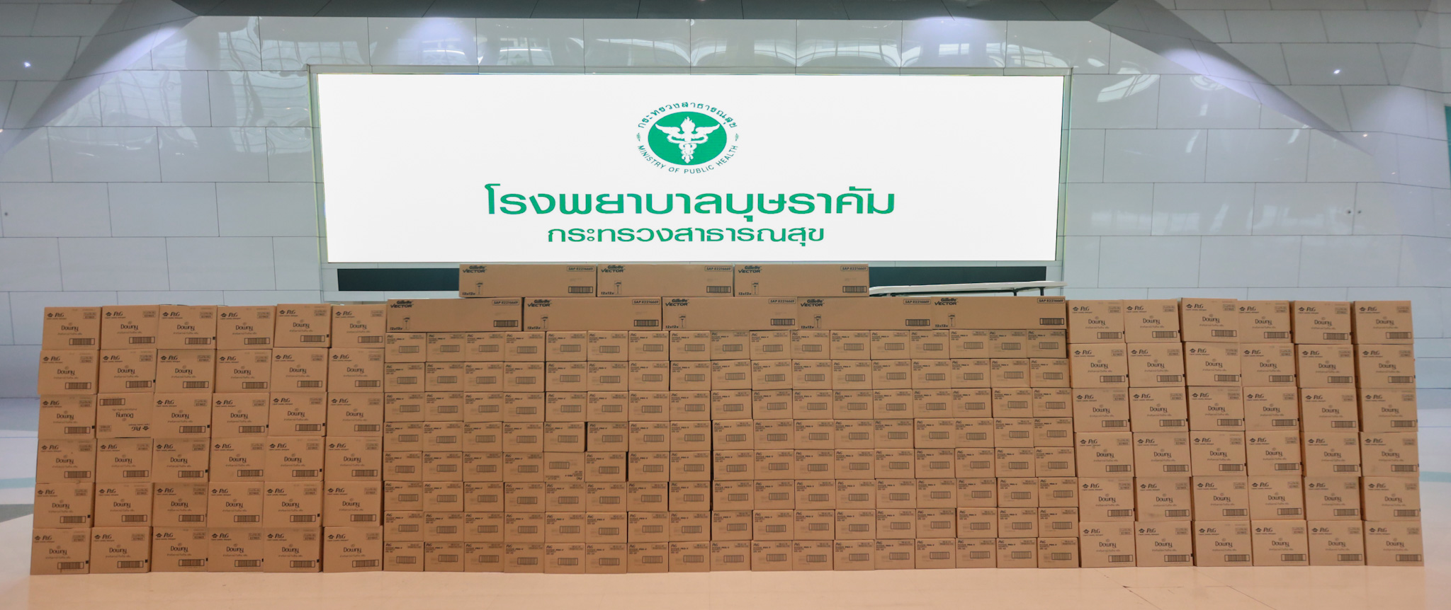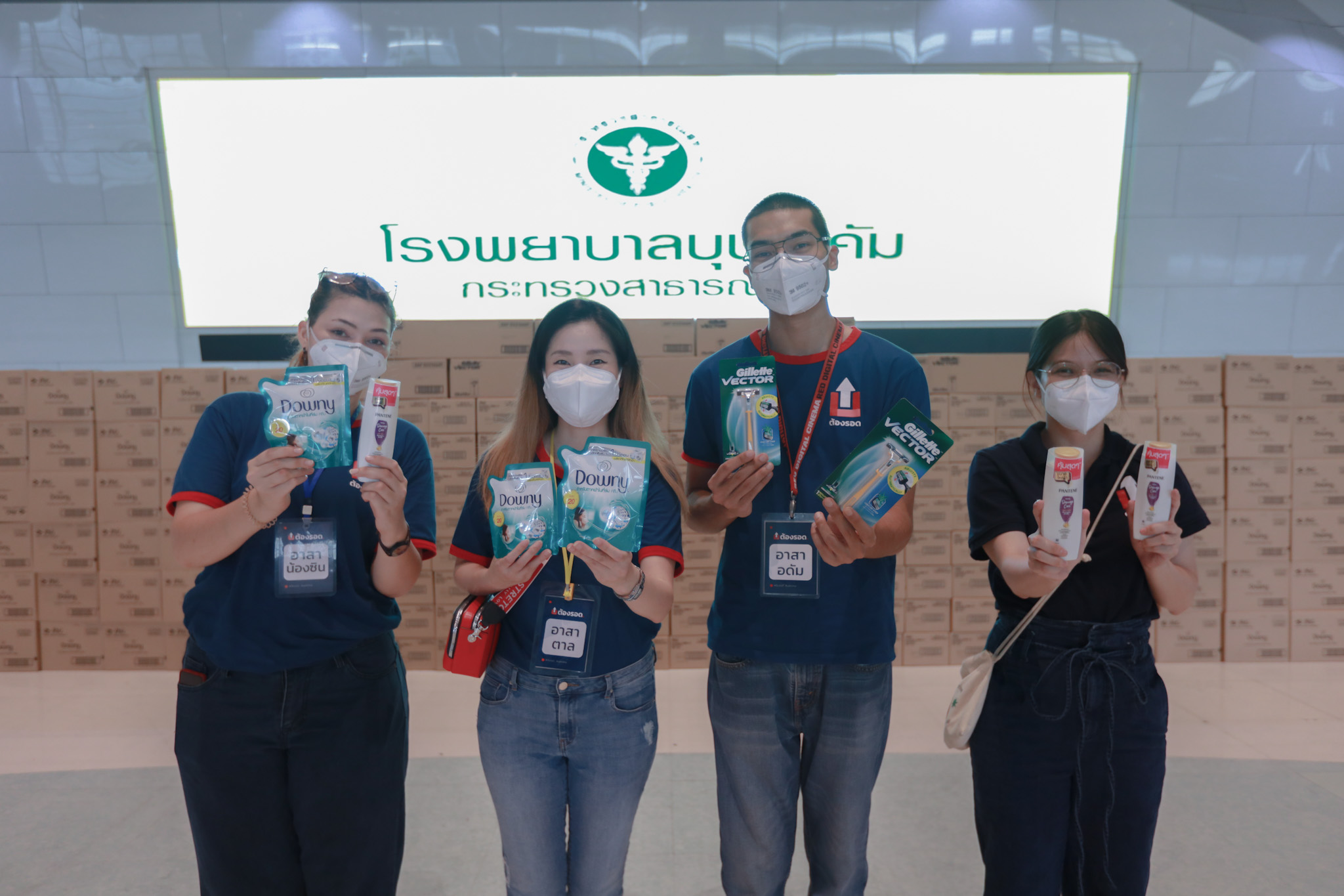 อาสาสมัครโครงการ “ต้องรอด” โดยกลุ่ม Up for Thai เดินทางไปโรงพยาบาลสนามบุษราคัมเพื่อนำสิ่งของบริจาคไปมอบแก่บุคลากรทางการแพทย์และโรงพยาบาลอีกครั้ง โดยครั้งนี้ได้รับการสนับสนุนสิ่งของเป็นผลิตภัณฑ์เพื่อสุขอนามัยจากแบรนด์ของ P&G ได้แก่ น้ำยาซักผ้า Downy ขนาด 150 มล. จำนวน 6,720 ขวด ยาสระผม Pantene 180 มล. รวม 9,000 ขวด และมีดโกนหนวด Gillette Vector รวม 1,080 อัน มูลค่าทั้งสิ้น 646,824 บาท