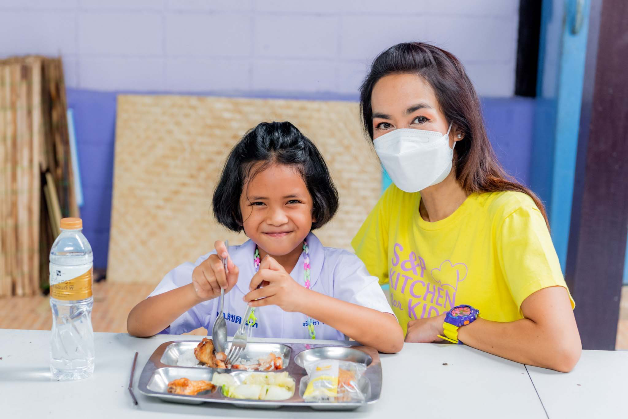 คุณมณีสุดา ศิลาอ่อน ประธานเจ้าหน้าที่สำนักพัฒนาความยั่งยืนและสื่อสารองค์กร บริษัท เอส แอนด์ พี ซินดิเคท จำกัด (มหาชน) กล่าวว่า “โครงการ S&P Kitchen for Kids จัดขึ้นต่อเนื่องเป็นปีที่ 13 มีวัตถุประสงค์เพื่อสร้างการมีสุขภาพและความเป็นอยู่ที่ดี (Good Health and Well-being) และเพื่อตอบแทนสังคม ซึ่งเป็นพันธกิจการพัฒนาที่ยั่งยืนของบริษัทฯ ตลอดระยะเวลา 48 ปี โดยมีผู้บริหารและพนักงานเข้าร่วมโครงการเพื่อส่งเสริมสุขอนามัยและโภชนาการที่ดีให้กับเยาวชน สำหรับโรงเรียนตำรวจตระเวนชายแดนบ้านต้นมะม่วง จ.กาญจนบุรี ซึ่งเป็นโรงเรียนในพระราชดำริของสมเด็จพระกนิษฐาธิราชเจ้ากรมสมเด็จพระเทพรัตนราชสุดาฯ สยามบรมราชกุมารี บริษัทฯ ได้เข้าไปพัฒนาและปรับปรุงโรงครัวให้ถูกสุขลักษณะมากขึ้น รวมทั้งมอบอุปกรณ์เครื่องใช้สำหรับประกอบอาหาร อาทิ ตู้แช่ โต๊ะกลาง โต๊ะเอนกประสงค์ และยังส่งเสริมโครงการเกษตรยั่งยืนโดยมอบพันธุ์ปลาดุก จำนวน 1,000 ตัว เพื่อเป็นแหล่งวัตถุดิบที่สด สะอาด และปลอดภัย พร้อมกันนี้ได้ทำพิธีส่งมอบโรงครัว โดยผู้บริหารและพนักงานลงมือปรุงอาหารกลางวันเลี้ยงน้องๆ พร้อมมอบขนม เอส แอนด์ พี ให้อิ่มอร่อย สุขภาพดีกันถ้วนหน้า”