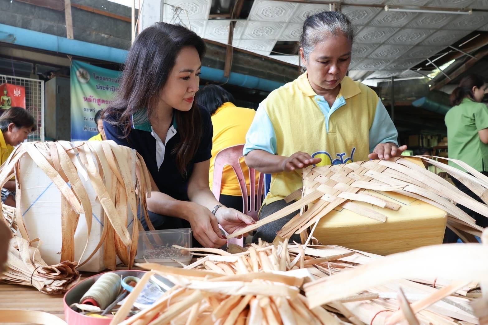 บริษัท เอส แอนด์ พี ซินดิเคท จำกัด (มหาชน) นำโดย คุณมณีสุดา ศิลาอ่อน ประธานเจ้าหน้าที่สำนักพัฒนาความยั่งยืนและสื่อสารองค์กร คัดสรรผลิตภัณฑ์ชุมชน ‘กระเป๋าผ้าขาวม้า จ.อำนาจเจริญ’ และ ‘ตะกร้าผักตบชวา จ.อ่างทอง’ เพื่อเป็นชุดของขวัญสำหรับเทศกาลปีใหม่ 2025 รวมทั้งเดินหน้ารณรงค์ผู้บริโภคพกถุงผ้า บอกลาถุงพลาสติกอย่างต่อเนื่อง ด้วยการนำกลับมาใช้ซ้ำ สร้างสมดุลที่ยั่งยืน โดยลงพื้นที่เยี่ยมชมกระบวนการผลิตงานฝีมือชุมชน 2 แห่ง ได้แก่ กระบวนการผลิตกระเป๋าผ้าขาวม้างานฝีมือของกลุ่มผ้าฝ้ายทอมือบ้านโนนธาตุ จ.อำนาจเจริญ และกระบวนการจักสานตะกร้าผักตบชวา ณ วิสาหกิจชุมชนจักสานผักตบชวาบ้านบางตาแผ่น จ.อ่างทอง ภายใต้โครงการ “S&P Growing Together”