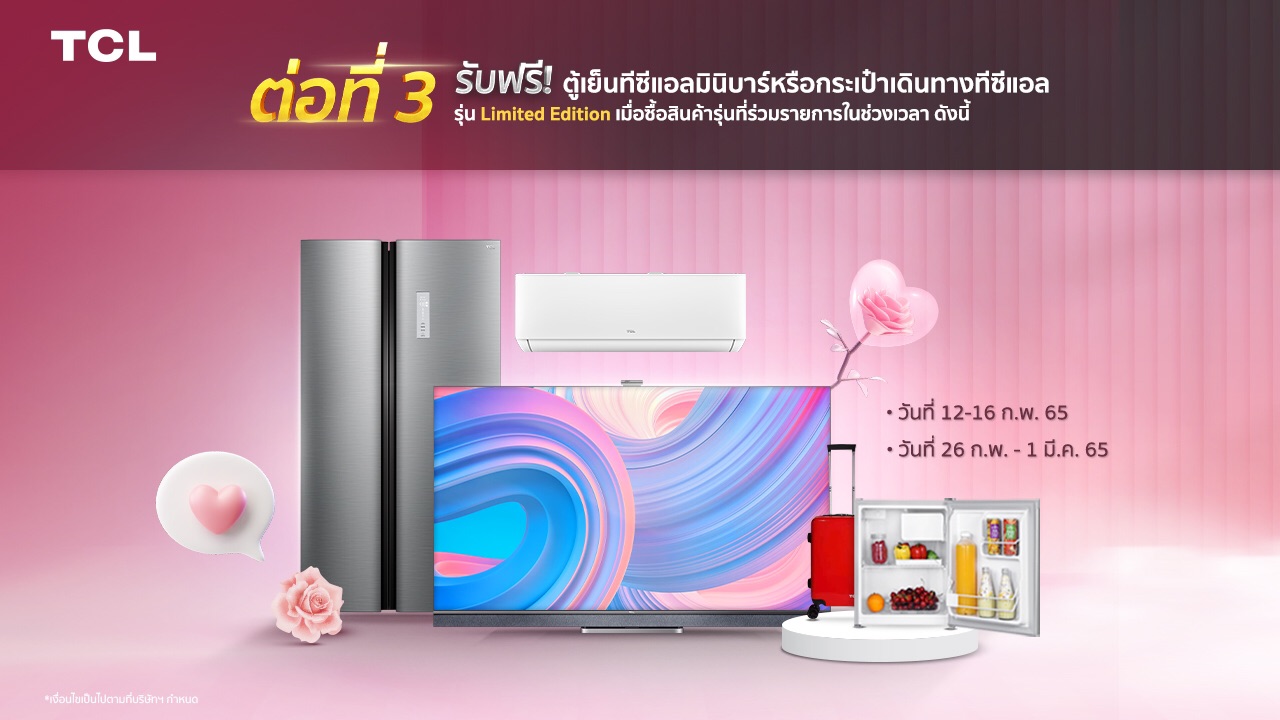 Edition และต่อที่ 3 รับฟรีตู้เย็นทีซีแอลมินิบาร์หรือกระเป๋าเดินทางทีซีแอล รุ่น Limited Edition