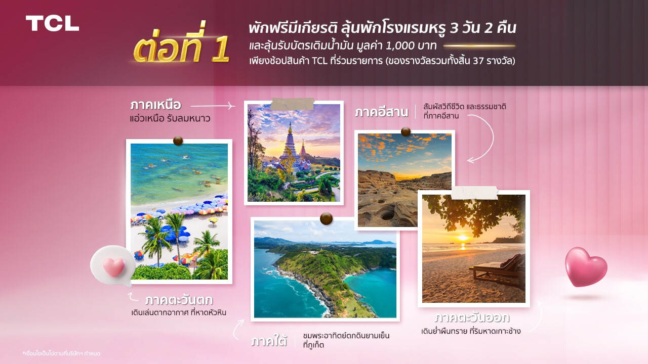 ทีซีแอล แบรนด์ผลิตภัณฑ์เครื่องใช้ไฟฟ้ามาตรฐานระดับโลก ประกาศรายชื่อผู้โชคดีที่ได้รับรางวัลที่พัก
